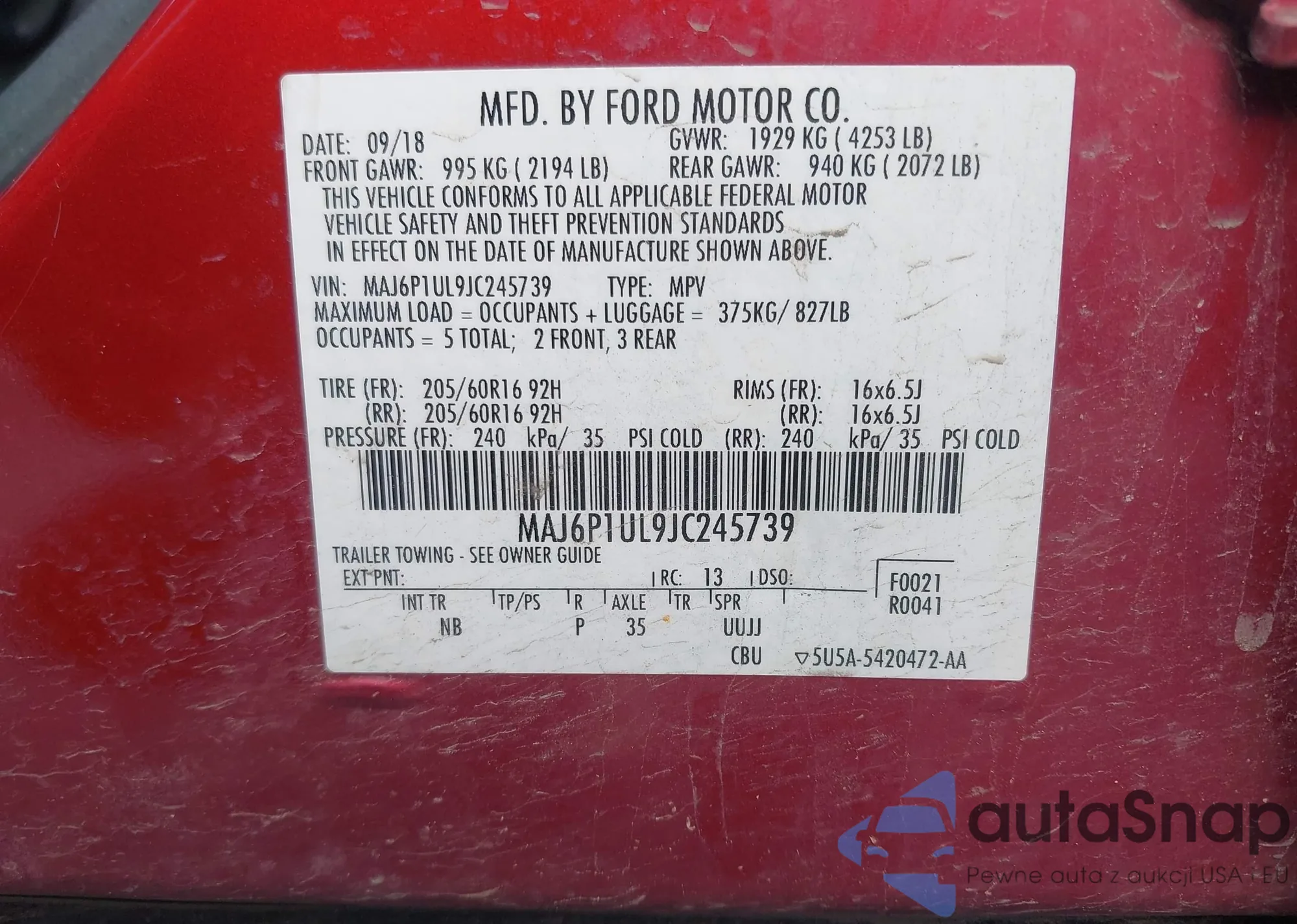 • VIN 3FA6P0LU8KR205563