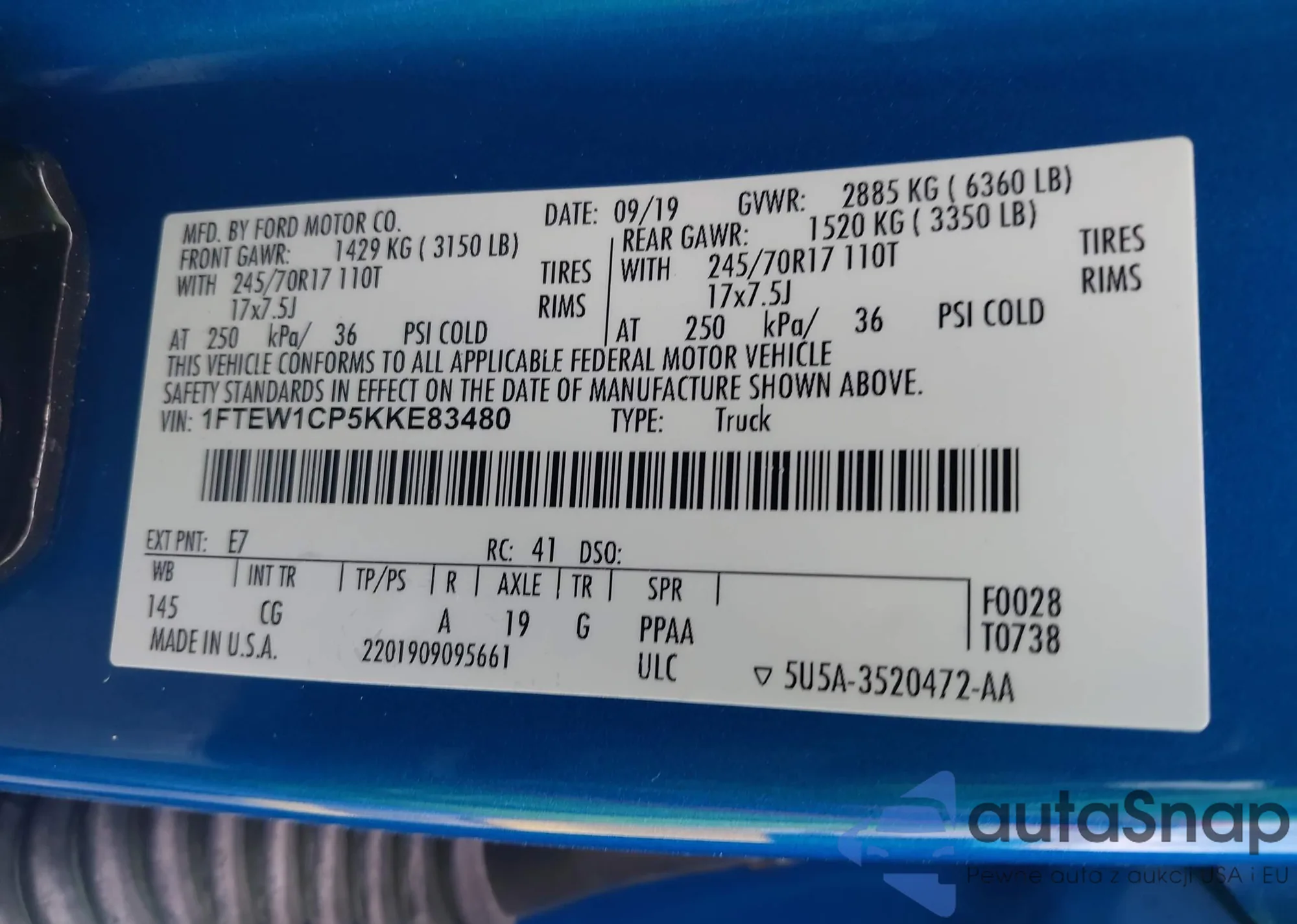 • VIN 1FTEW1CP5KKE83480