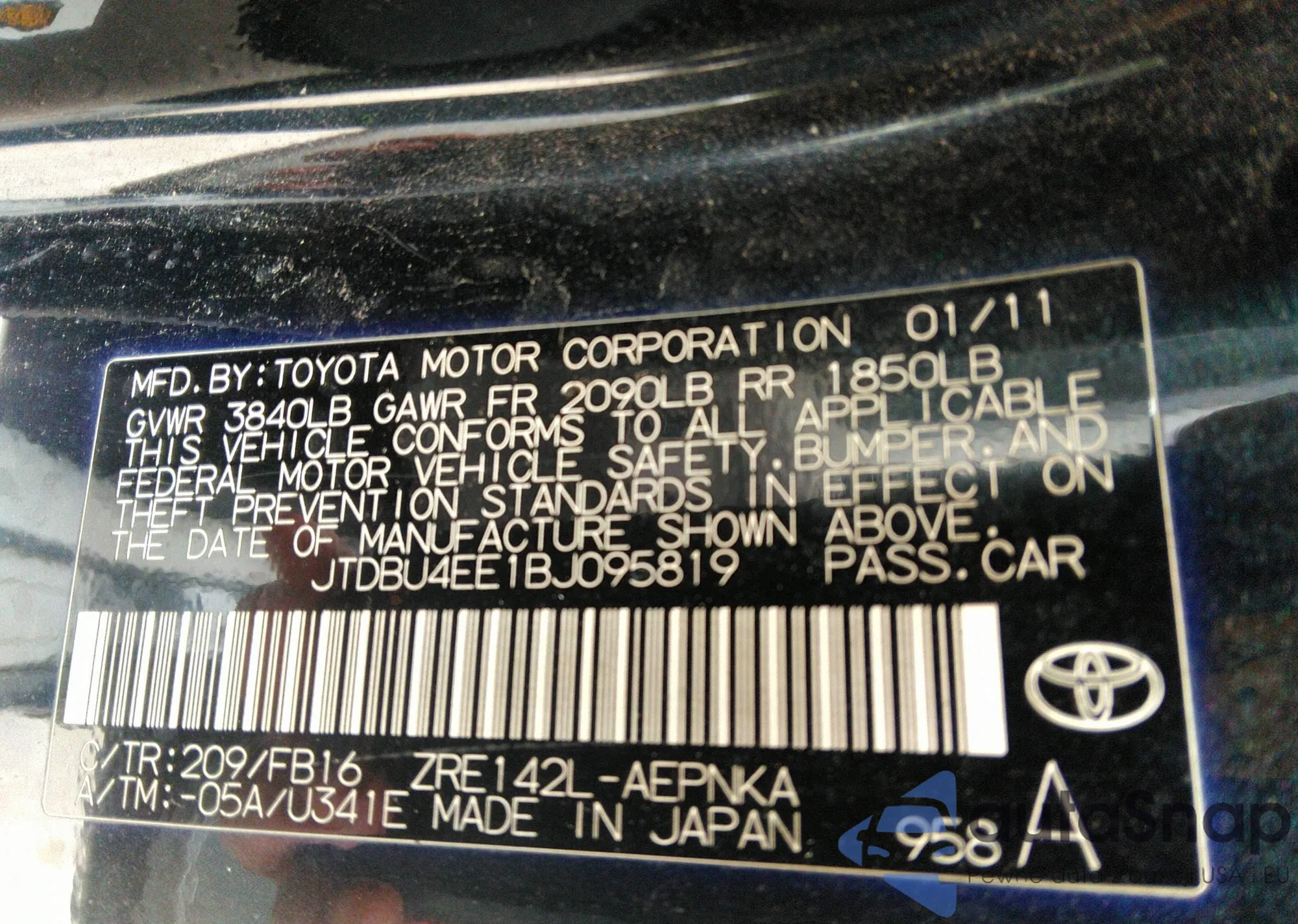 • VIN JTDBU4EE1BJ095819