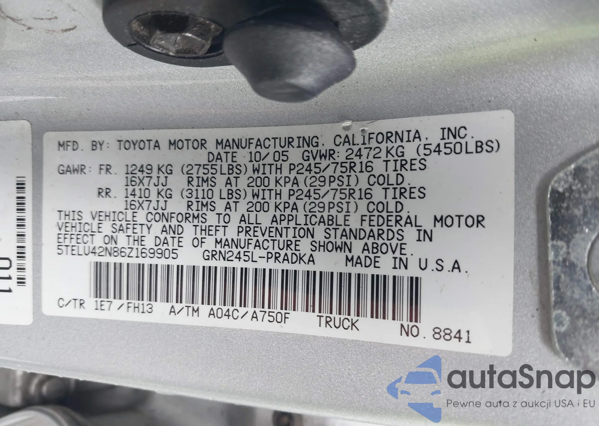 • VIN 5TELU42N86Z169905