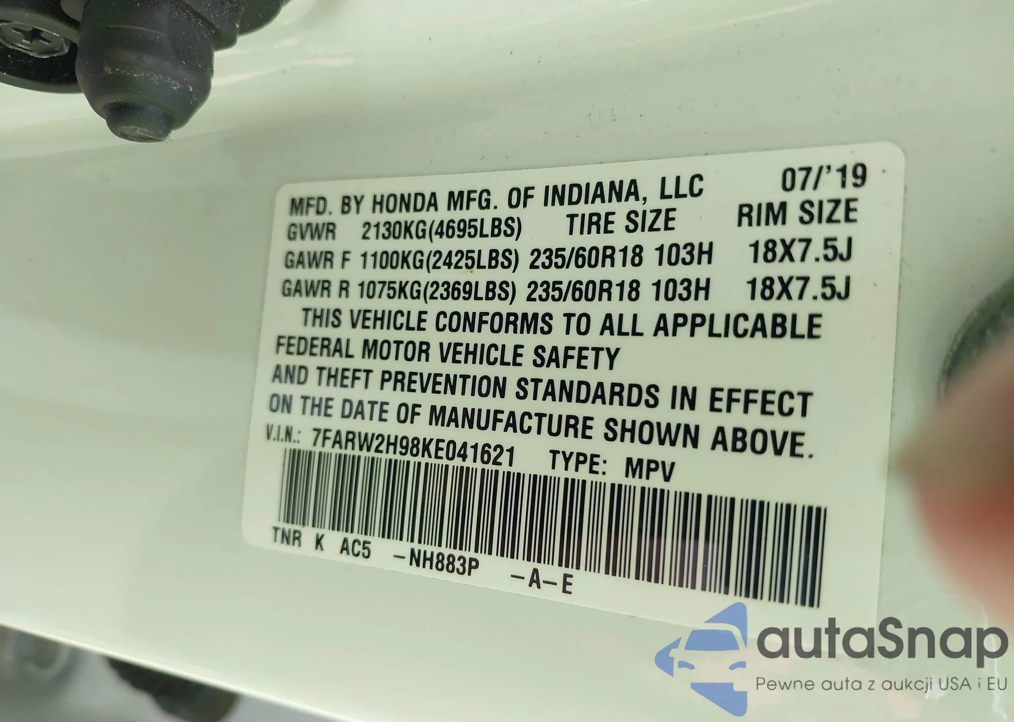 • VIN 7FARW2H98KE041621