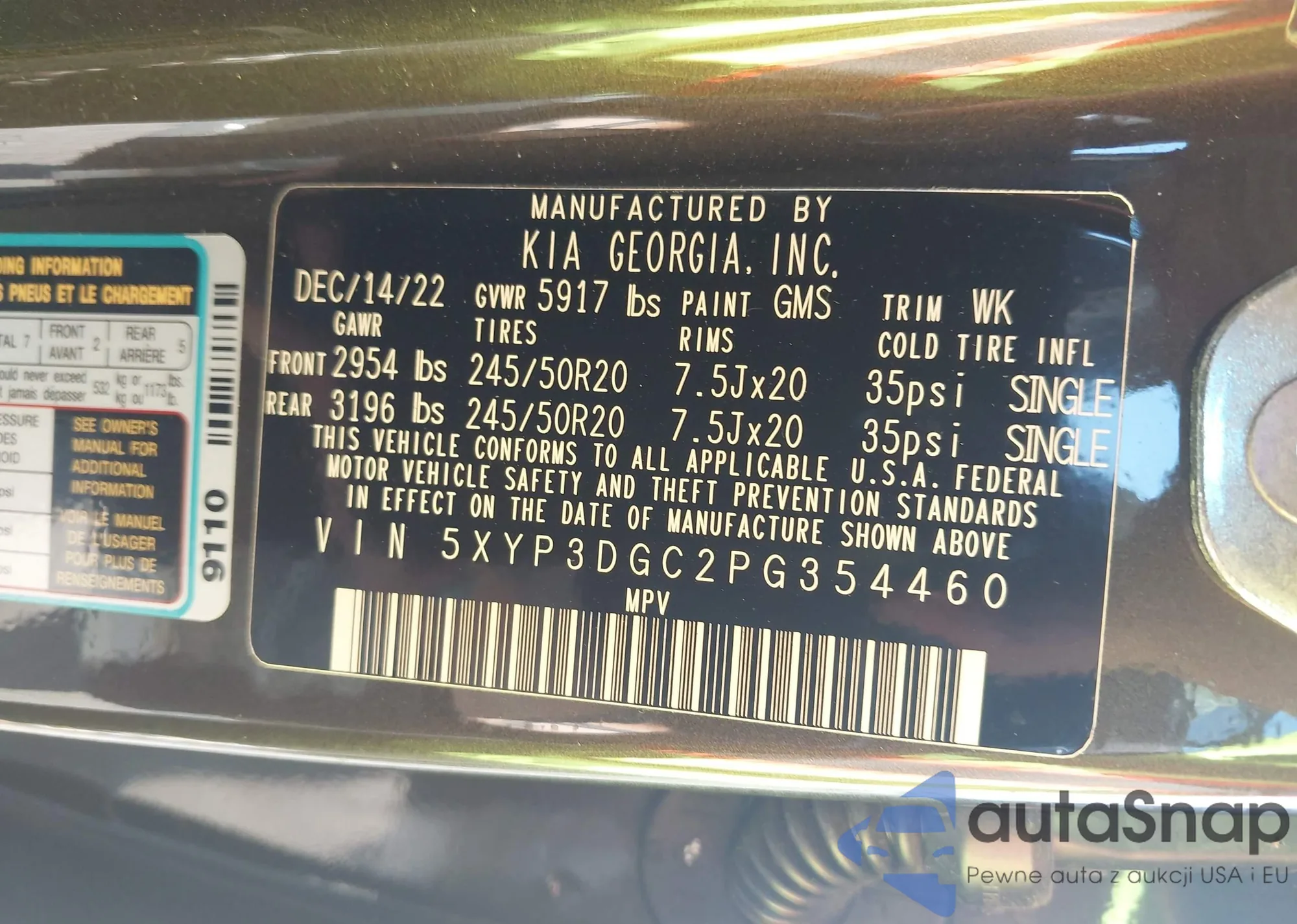 LOT: 42123098 VIN: 5XYP3DGC2PG354460