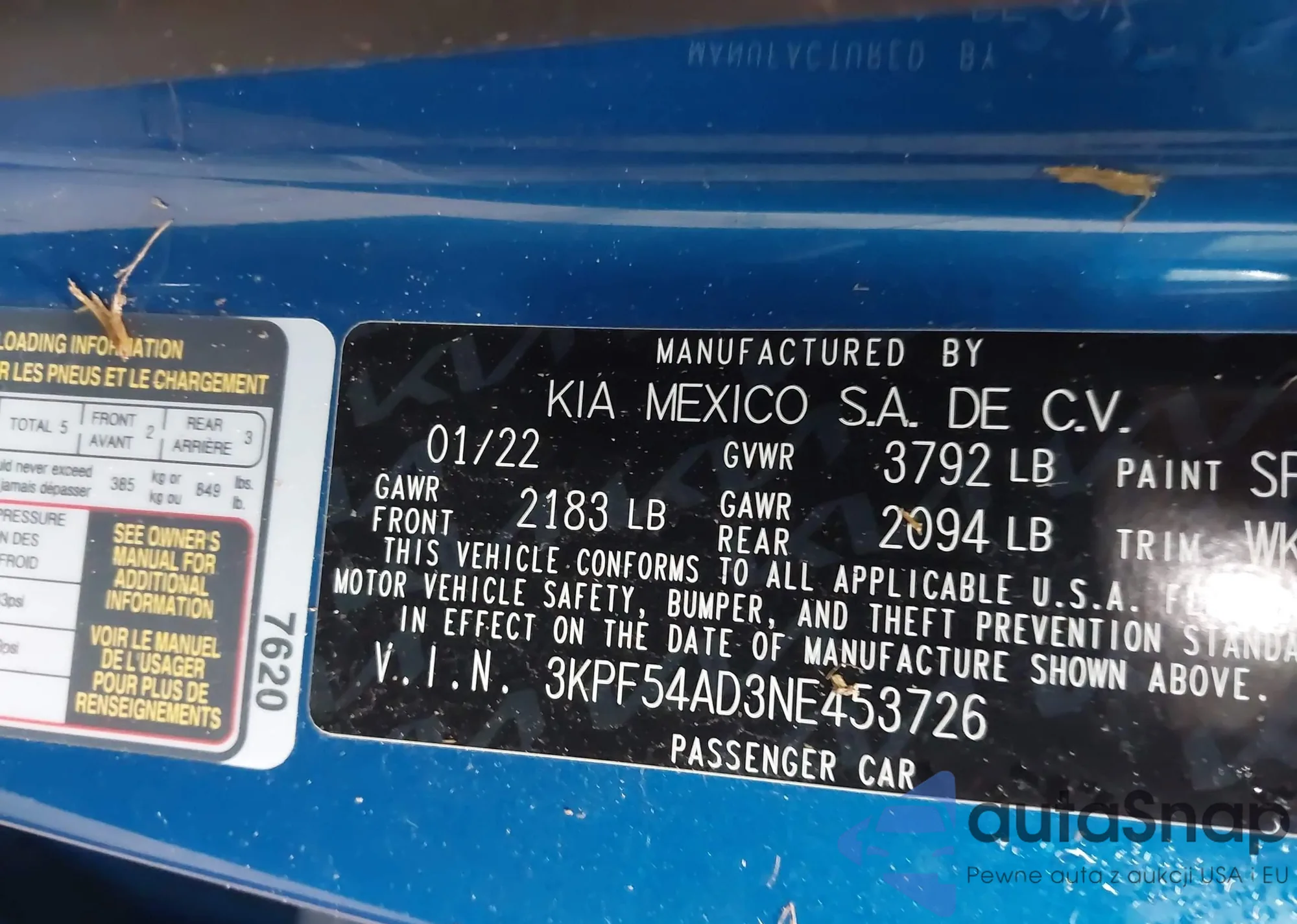 LOT: 42205437 VIN: 3KPF54AD3NE453726