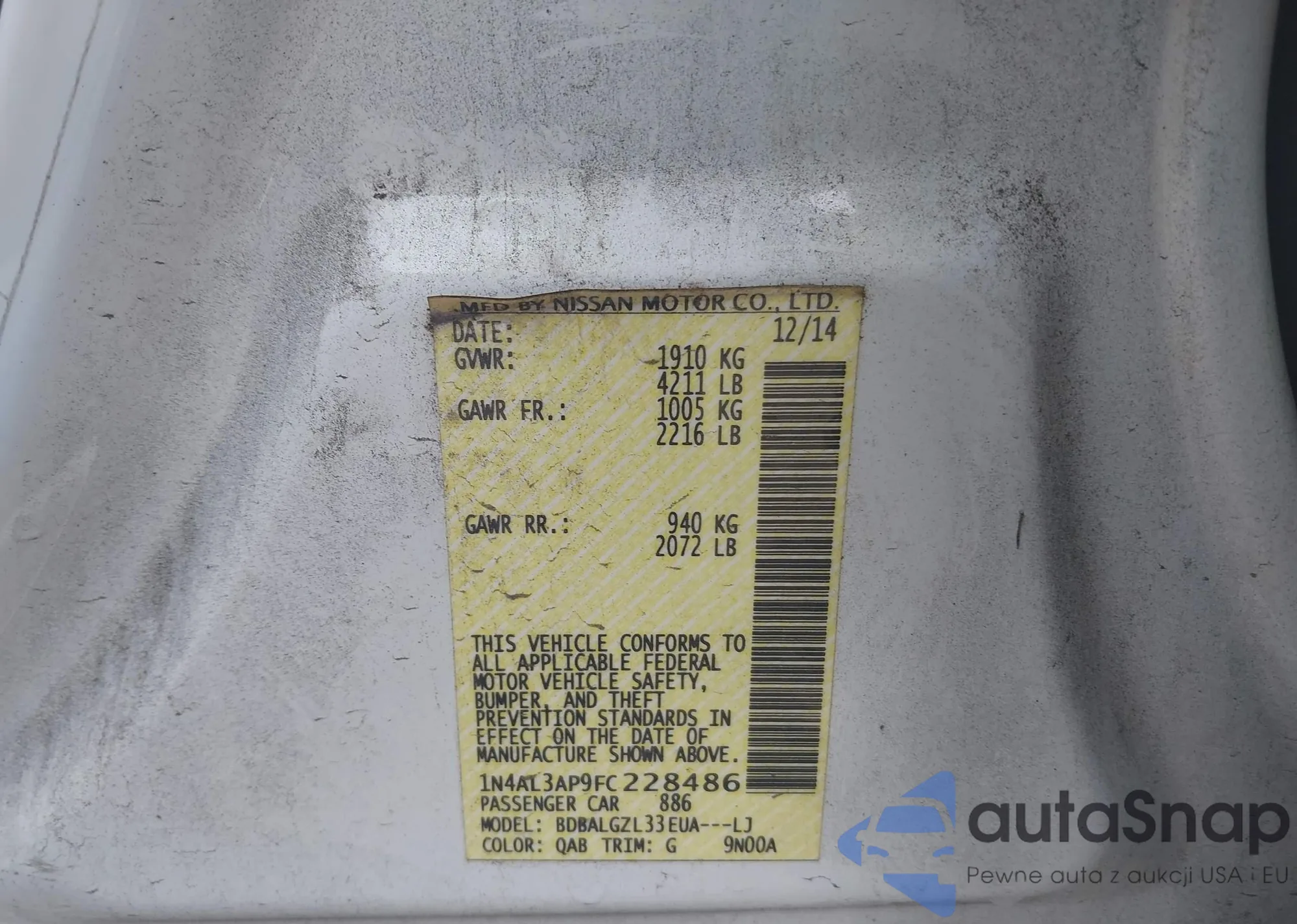 • VIN 1N4AL3AP9FC228486