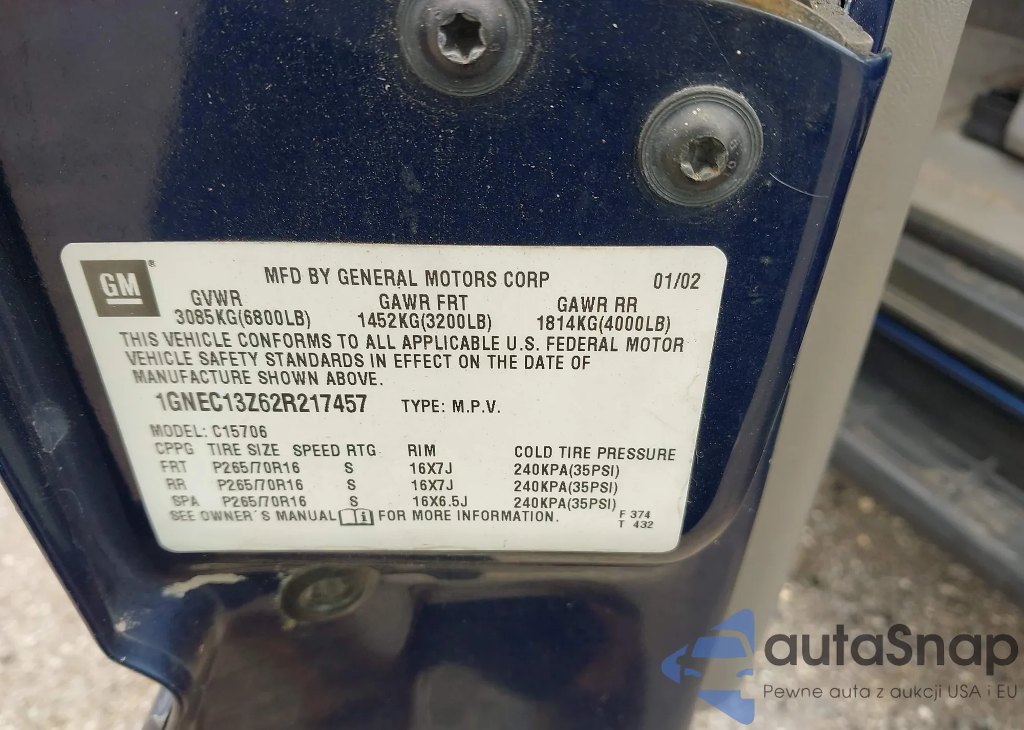 • VIN 3GNKBJR44NS204676