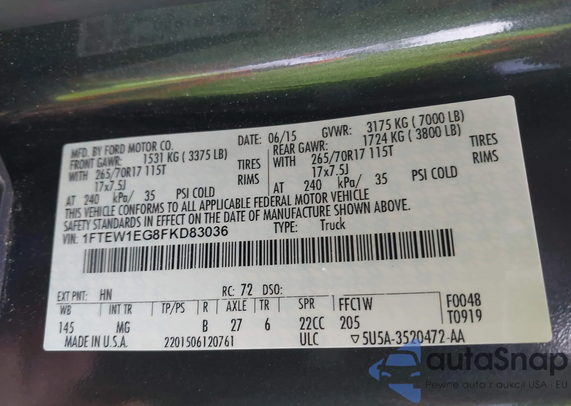 • VIN 1FTEW1EG8FKD83036