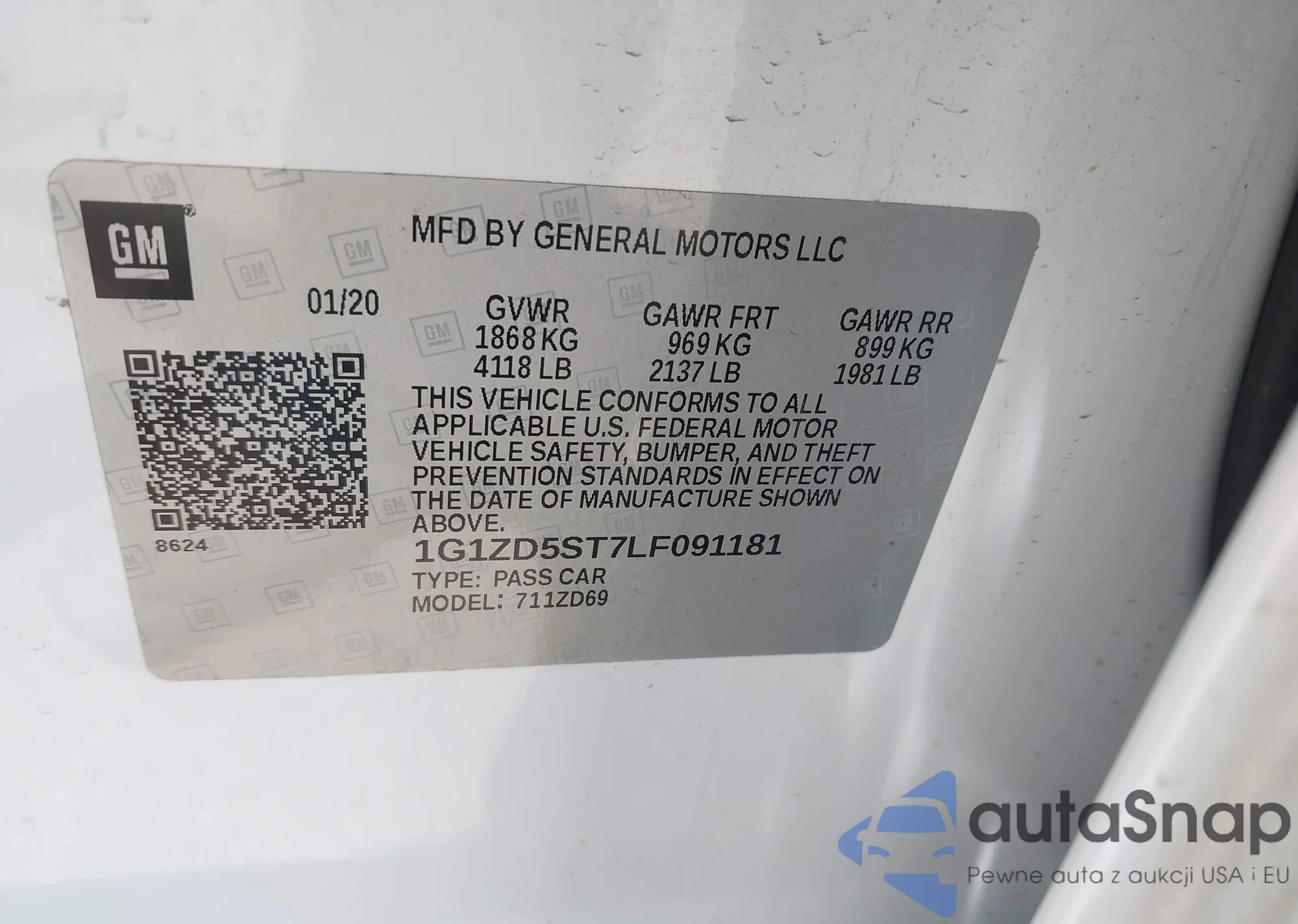 LOT: 42530041 VIN: 1G1ZD5ST7LF091181