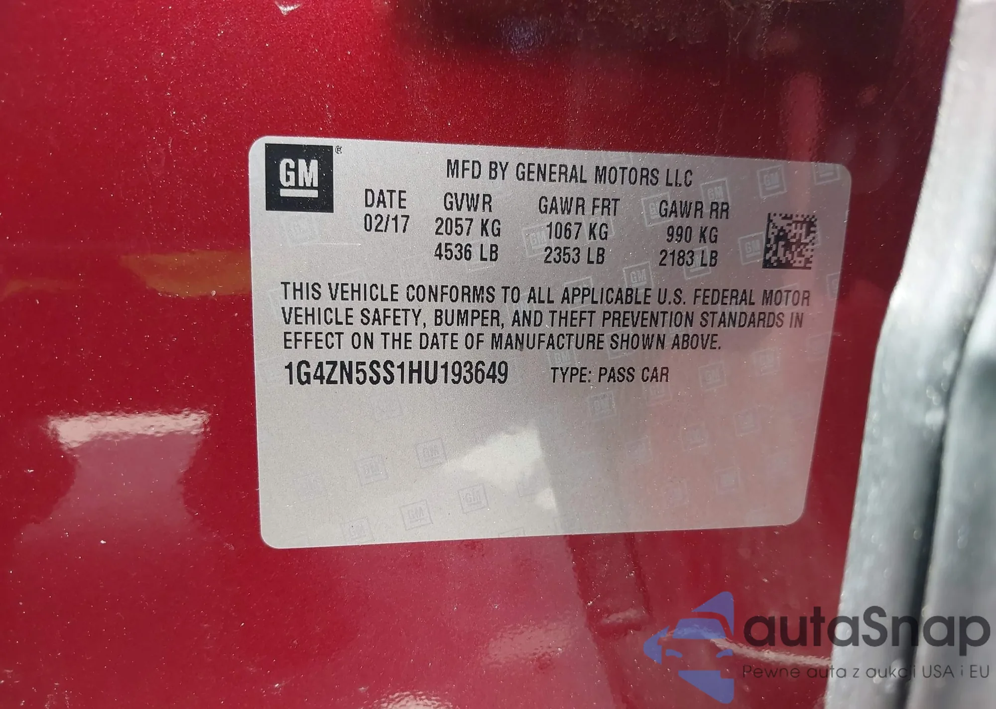 • VIN 1G4ZN5SS1HU193649