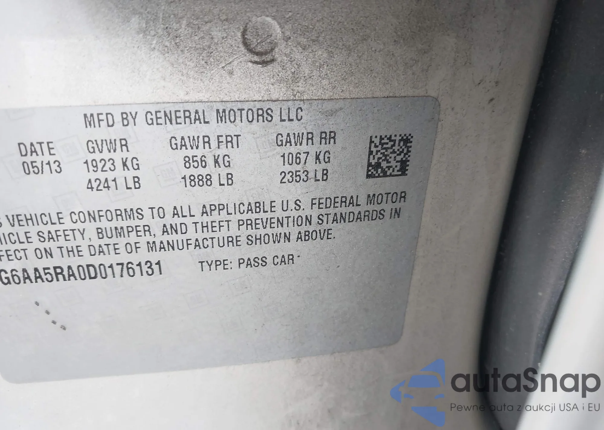 • VIN 1G6AA5RA0D0176131