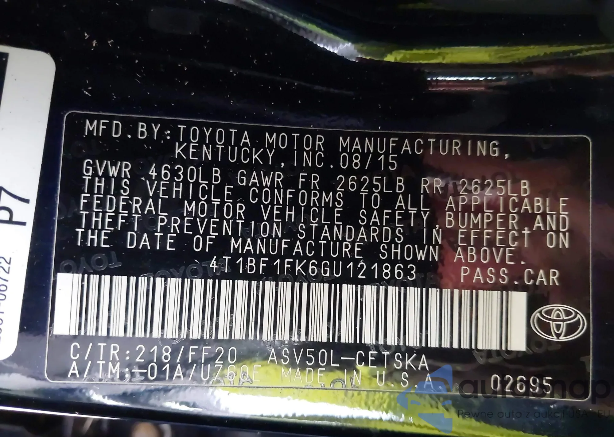• VIN 4T1BF1FK6GU121863
