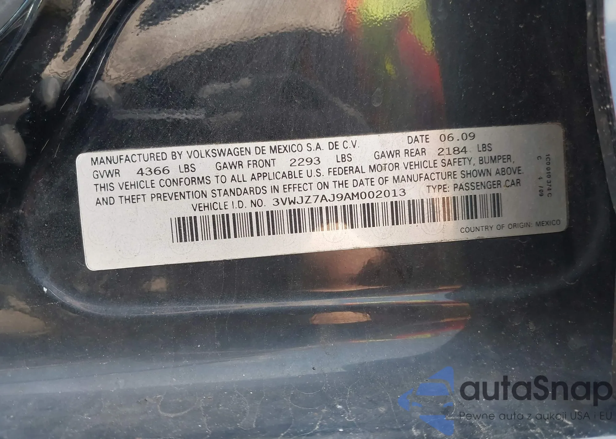 • VIN 3VWJZ7AJ9AM002013