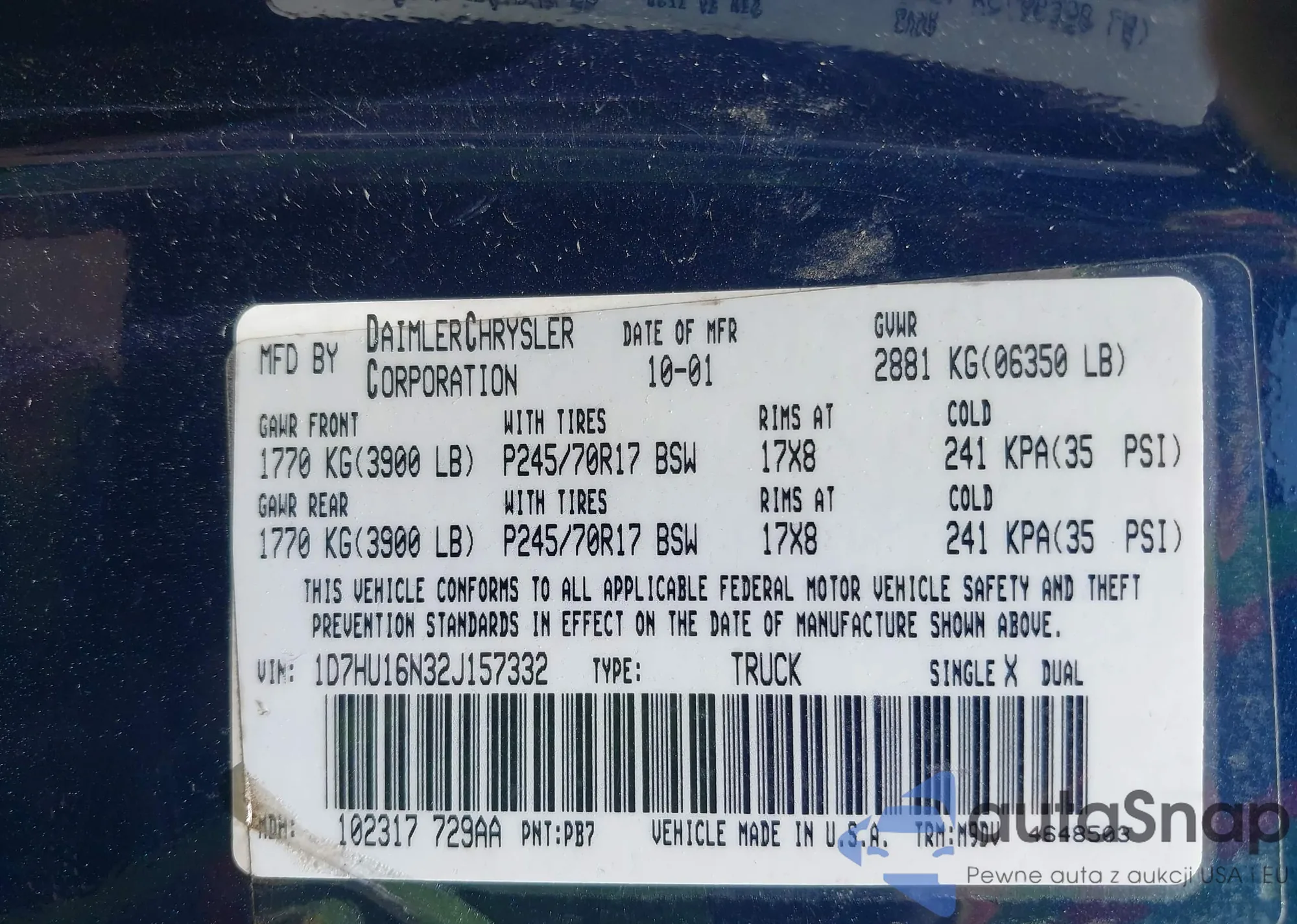 • VIN 1D7HU16N32J157332