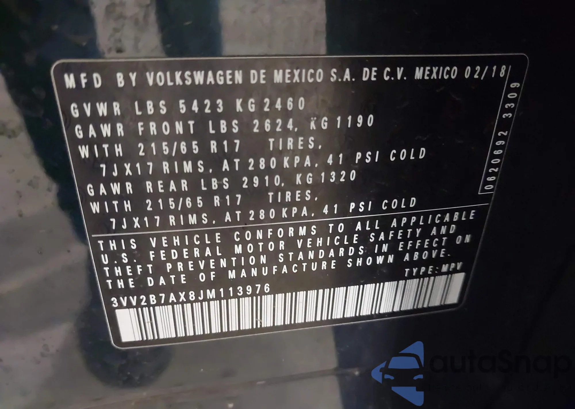 • VIN 3VV2B7AX8JM113976