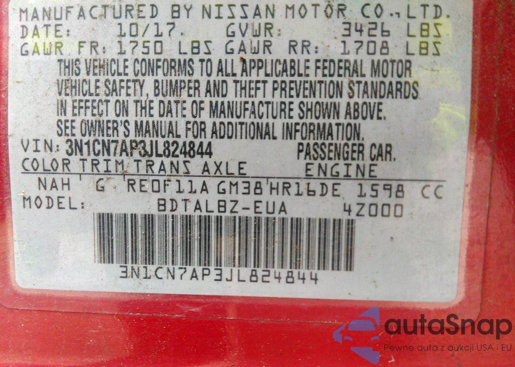 LOT: 42310576 VIN: 3VV2B7AX8JM113976