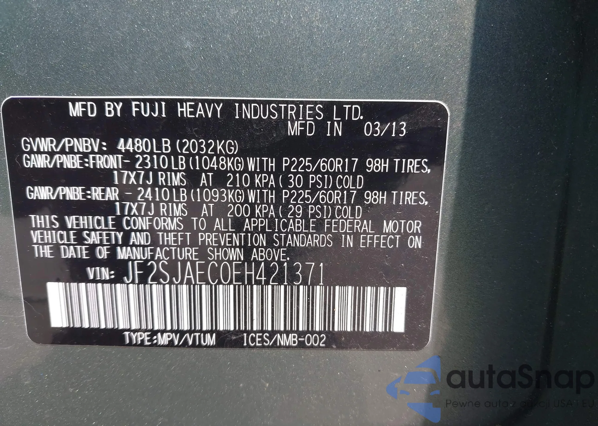 • VIN JF2SJAEC0EH421371