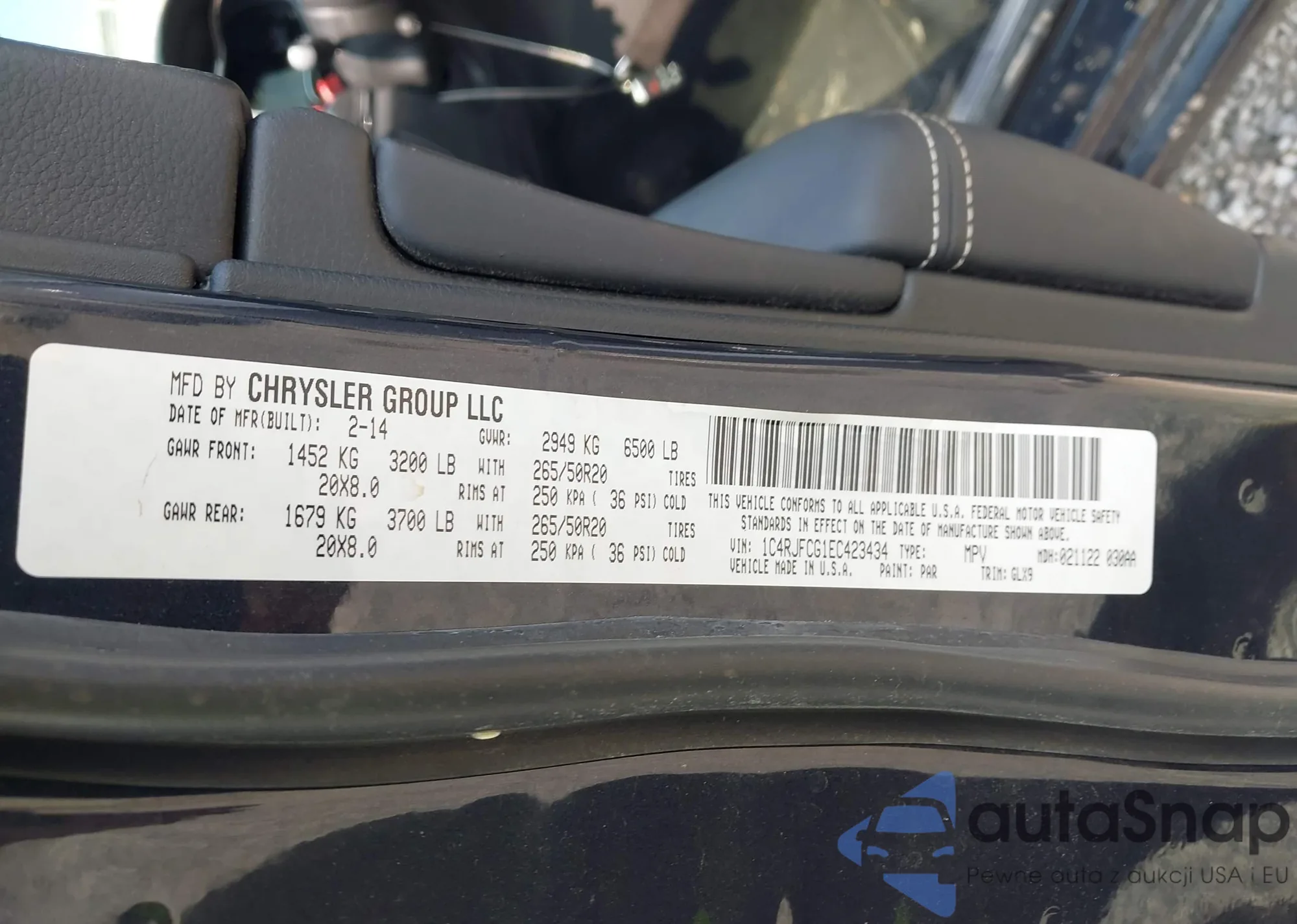 • VIN 1C4RJFCG1EC423434