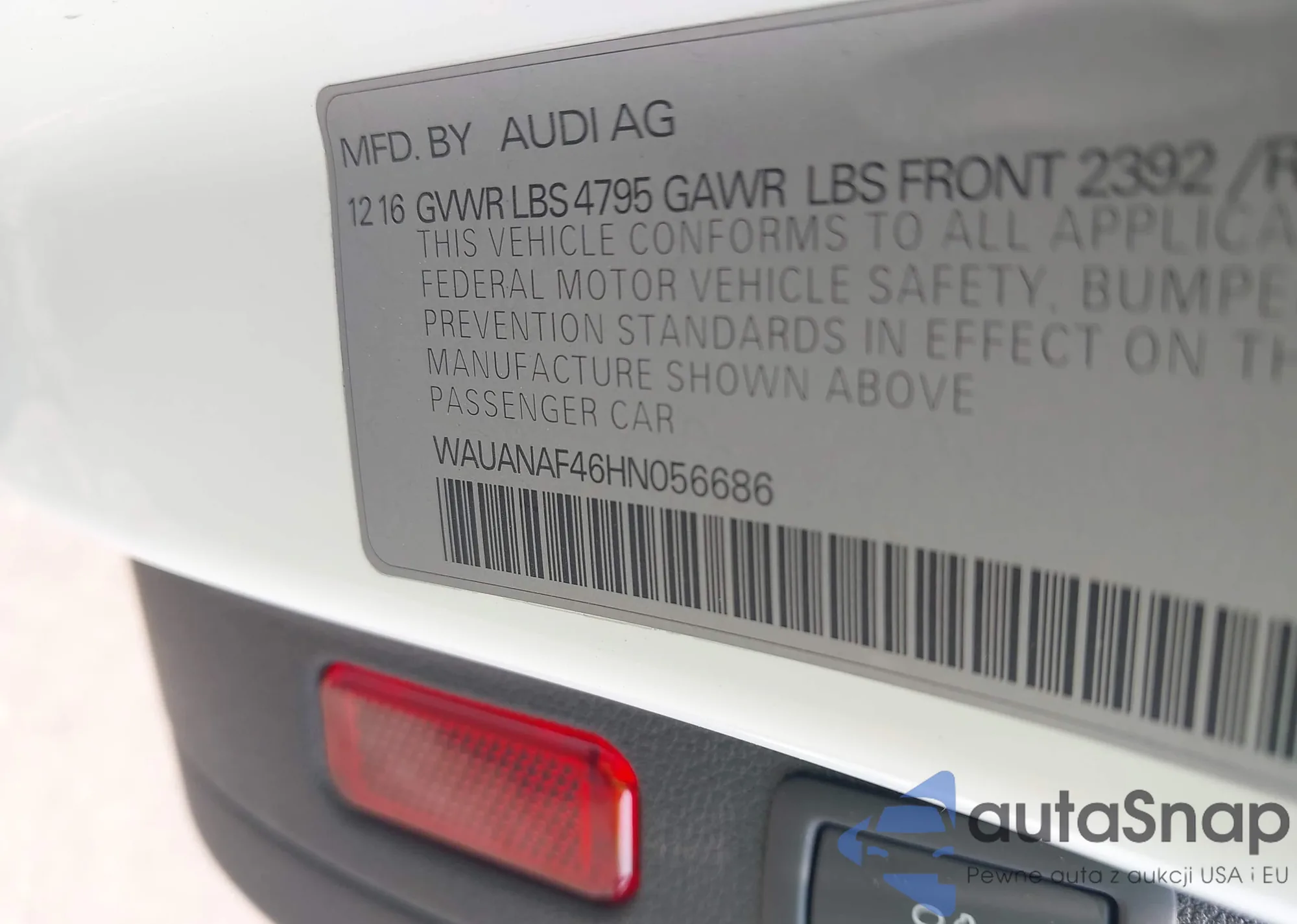 LOT: 42404649 VIN: WAUANAF46HN056686