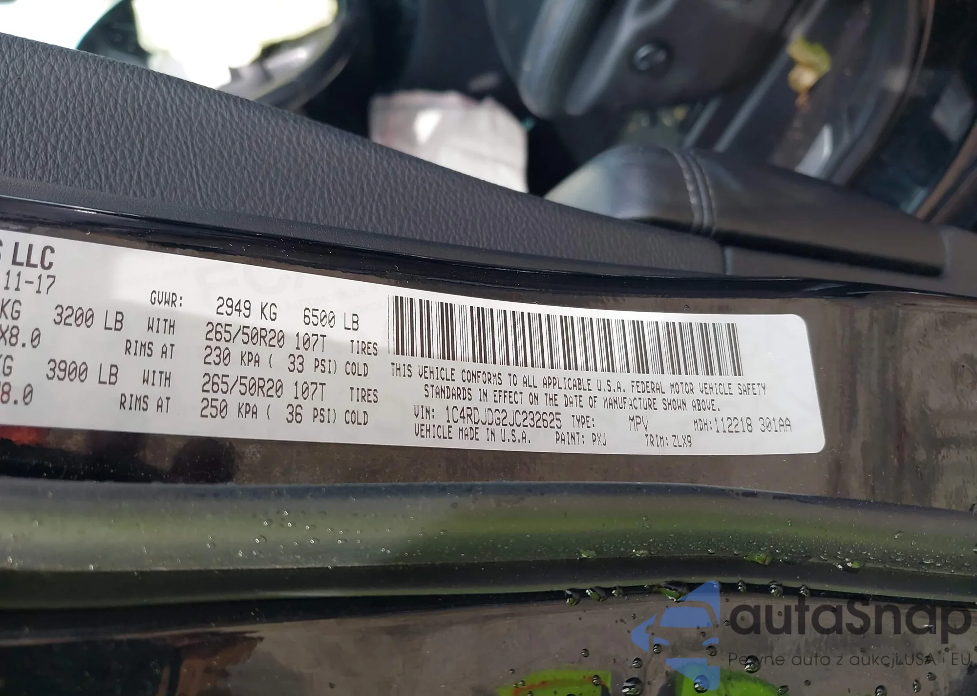 • VIN 1C4RDJDG2JC232625