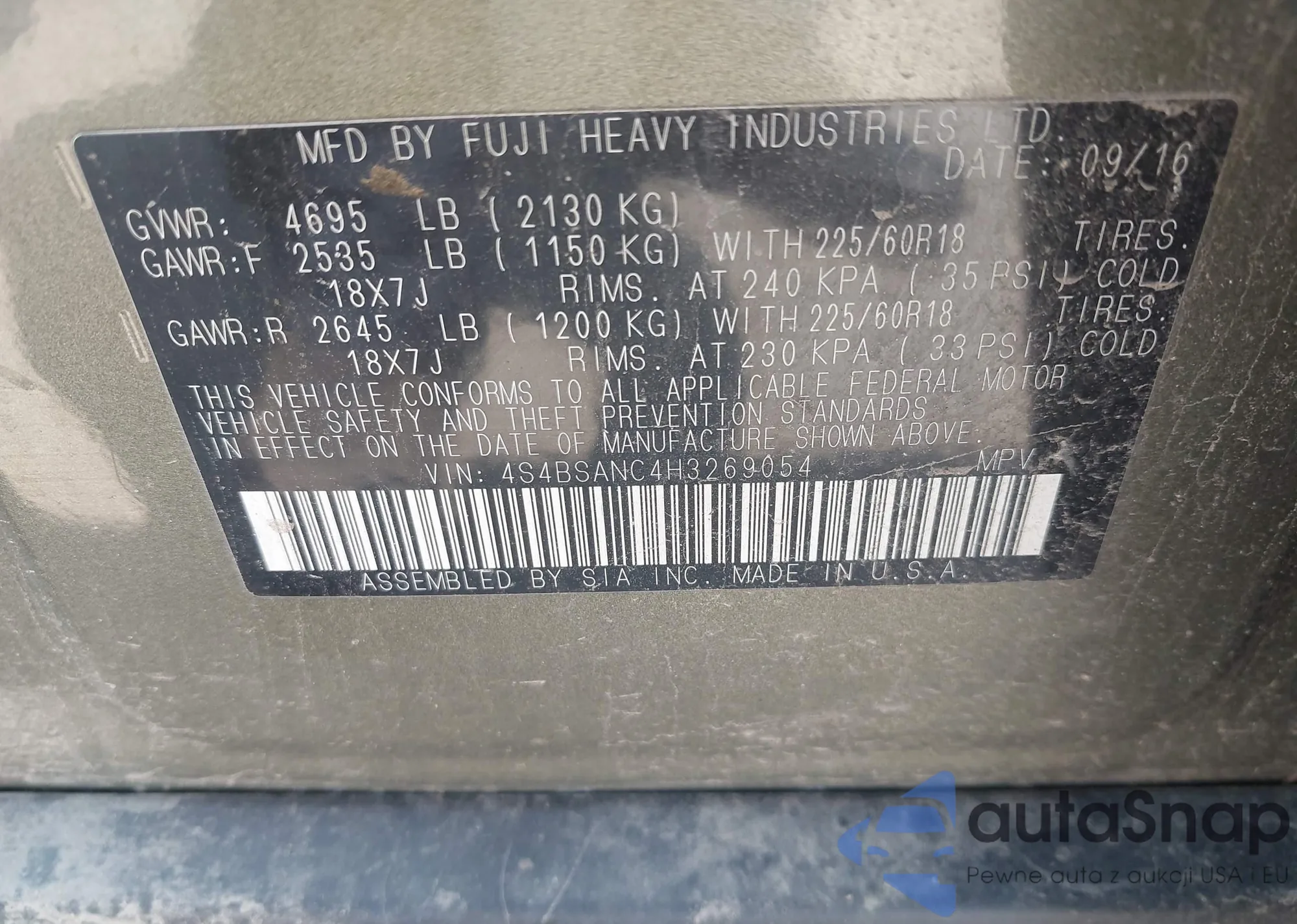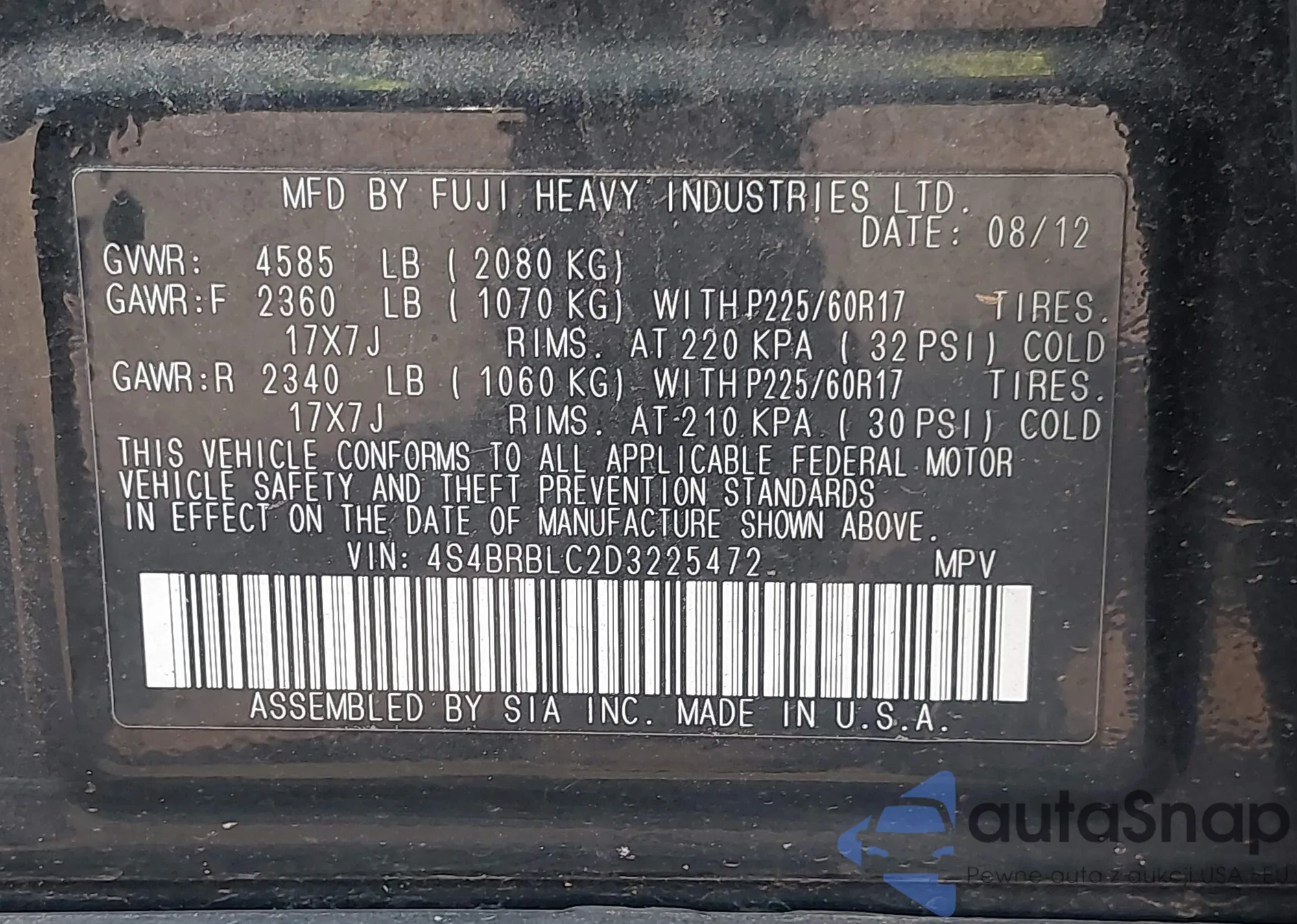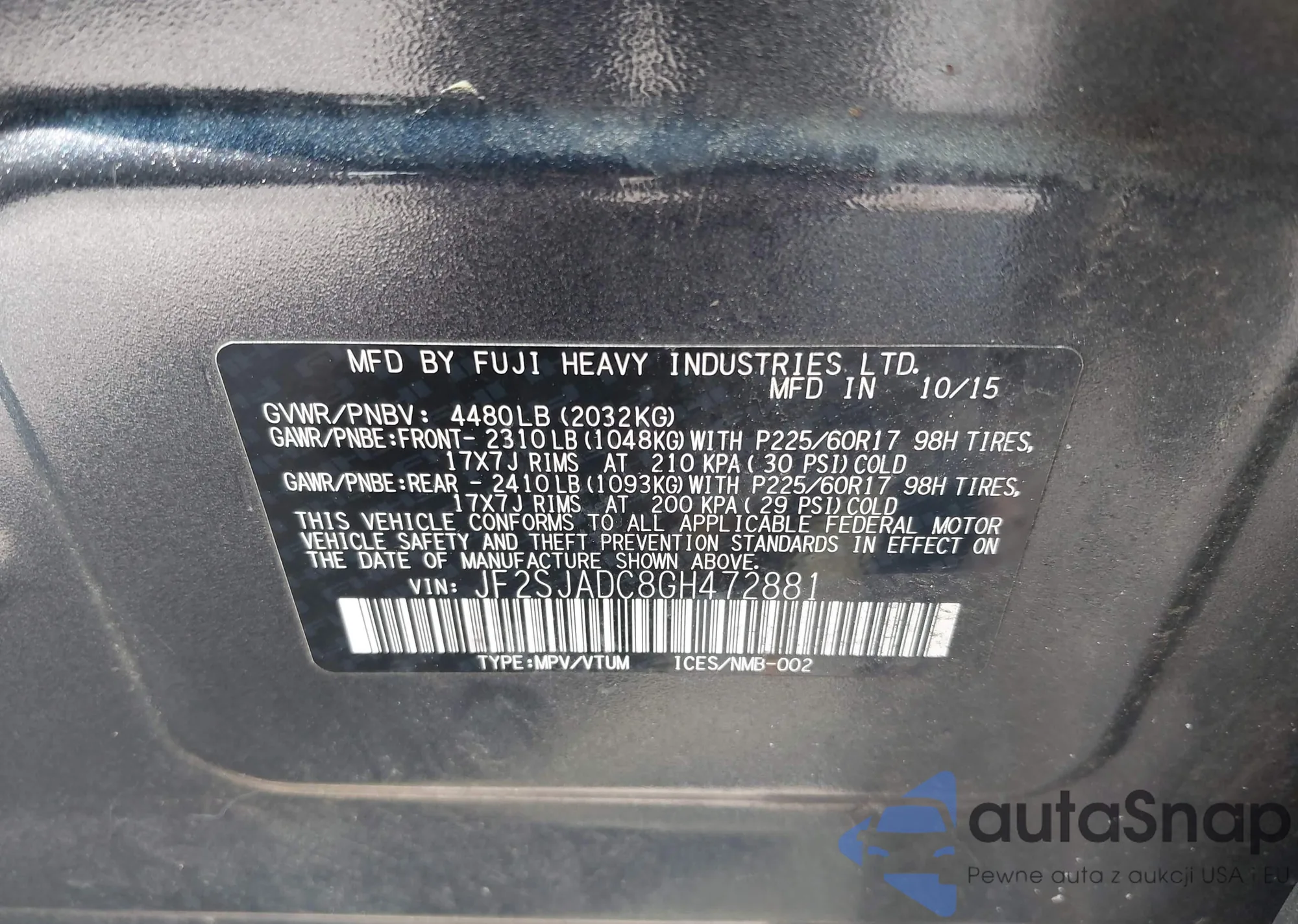 • VIN JF2SJADC8GH472881