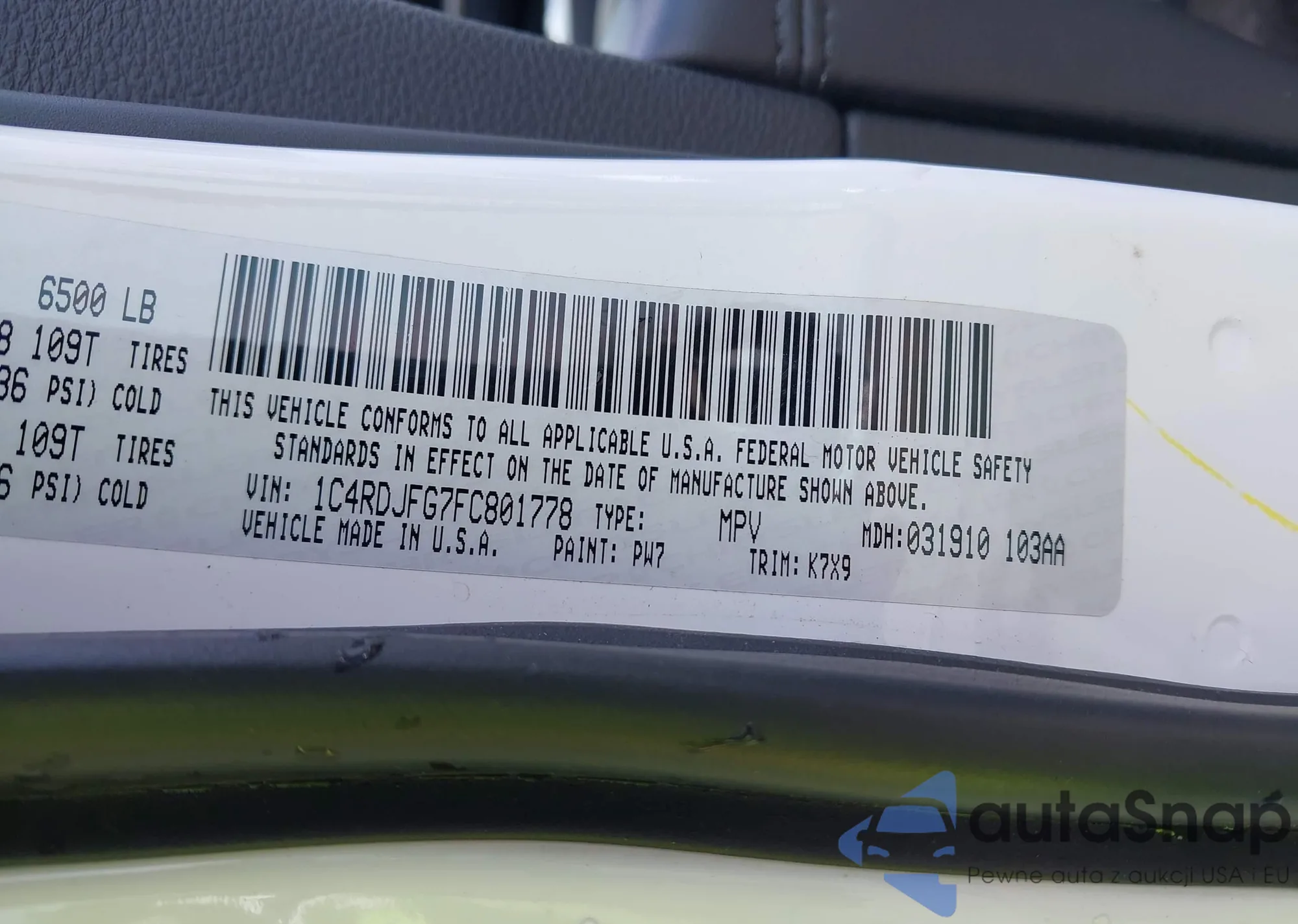 • VIN 1C4RDJFG7FC801778