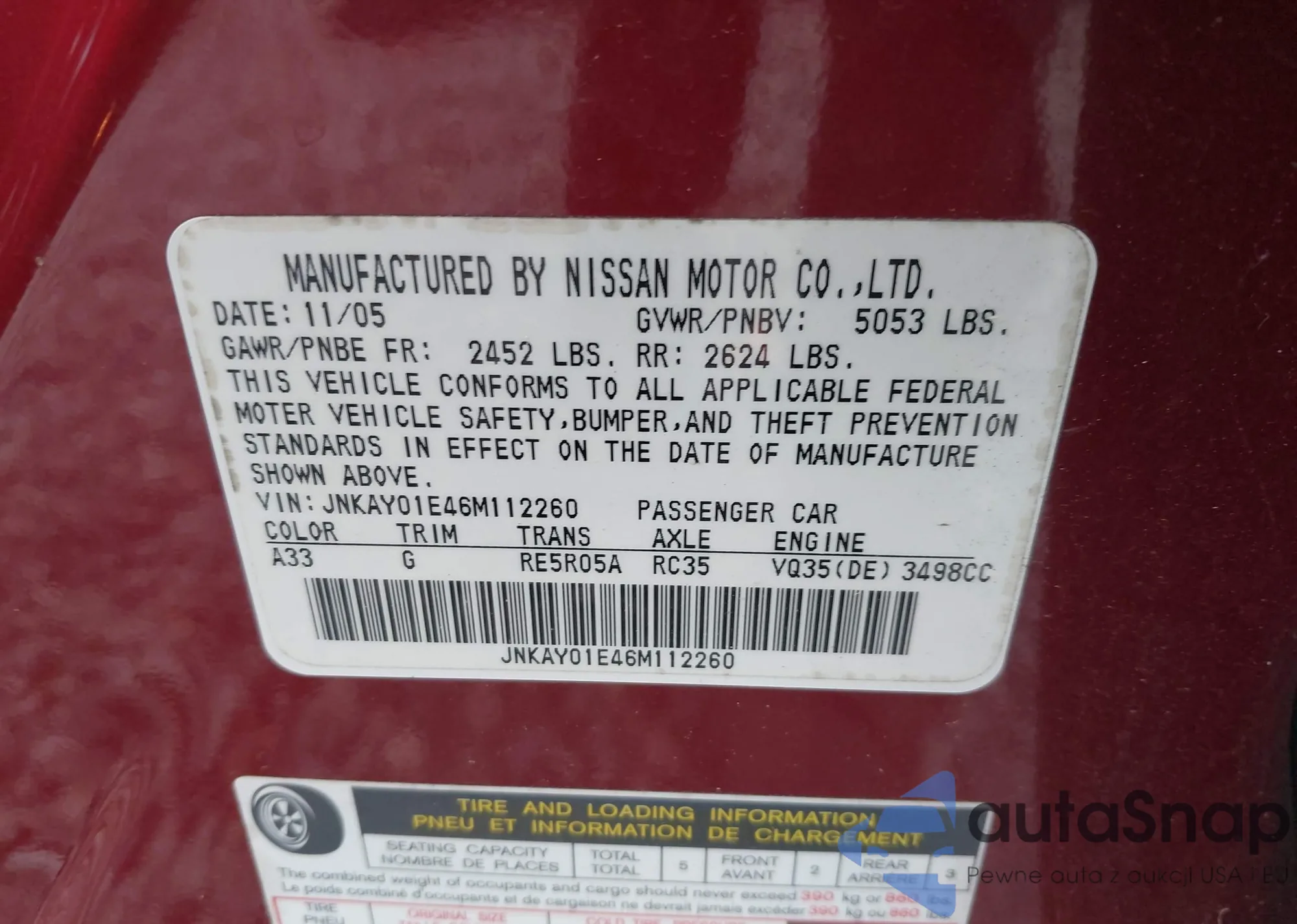 • VIN JNKAY01E46M112260