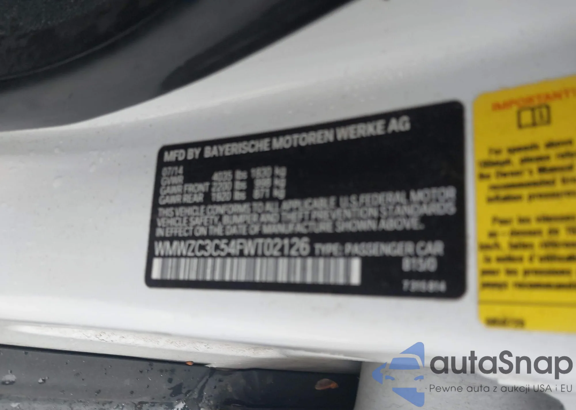 LOT: 42228098 VIN: WMWZC3C54FWT02126