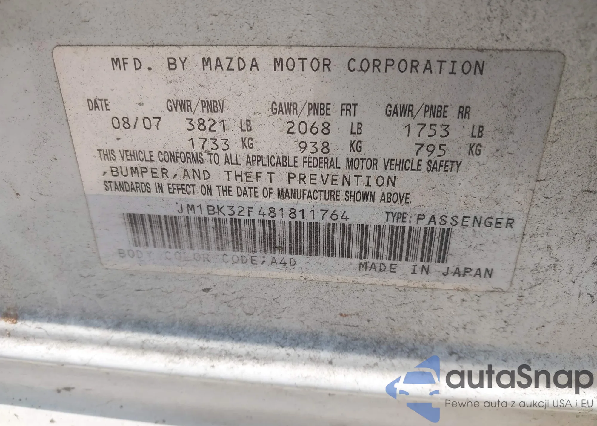 LOT: 42423319 VIN: JM1BK32F481811764