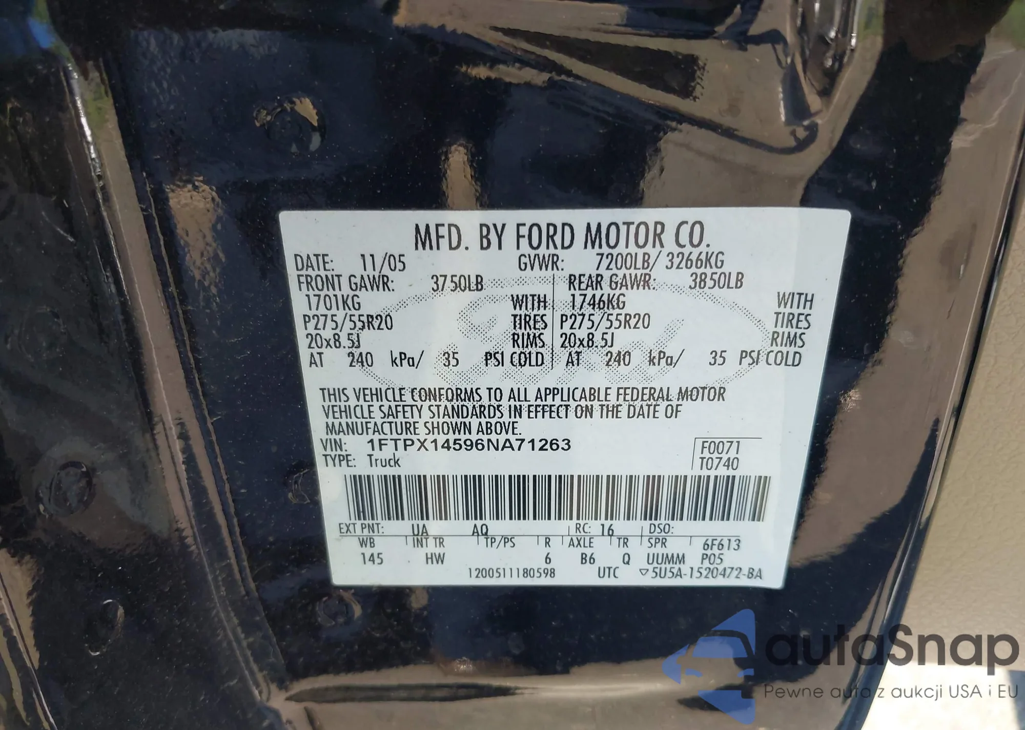 LOT: 42570692 VIN: 1FTPX14596NA71263
