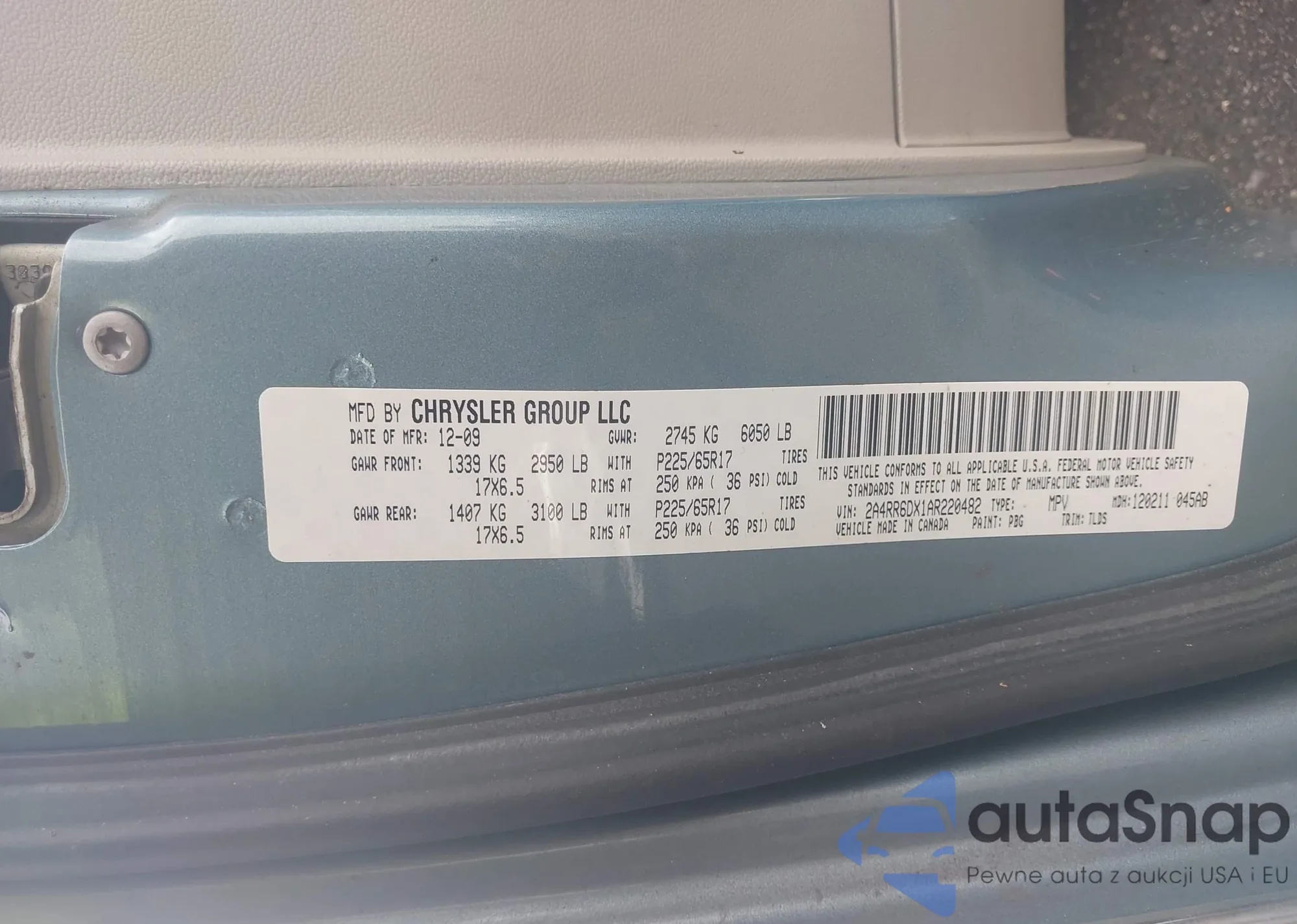 • VIN 2A4RR6DX1AR220482