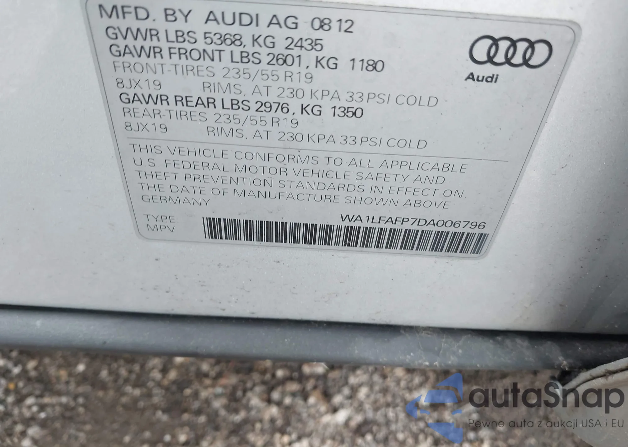LOT: 42267988 VIN: WA1LFAFP7DA006796