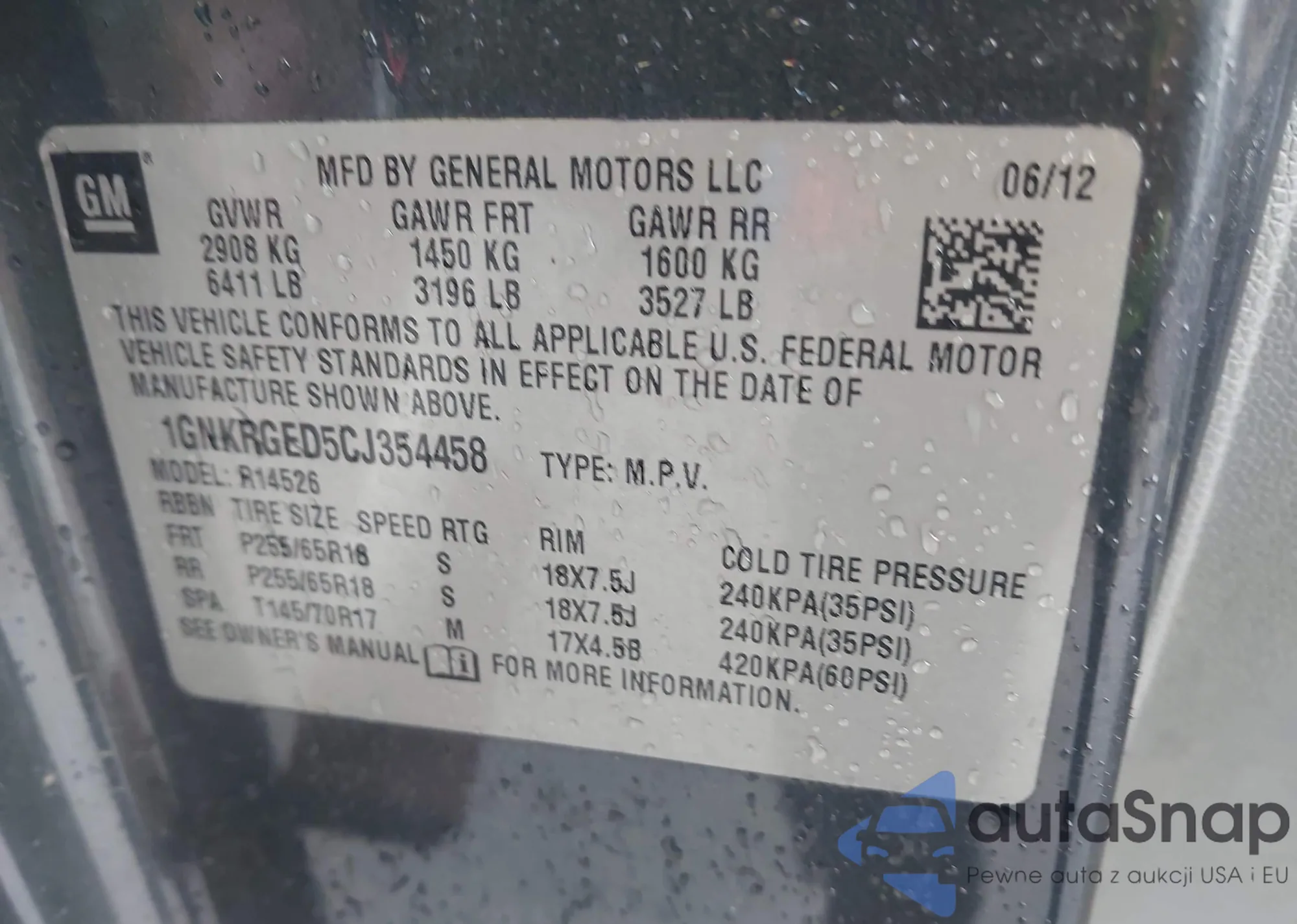 LOT: 42303779 VIN: 1GNKRGED5CJ354458