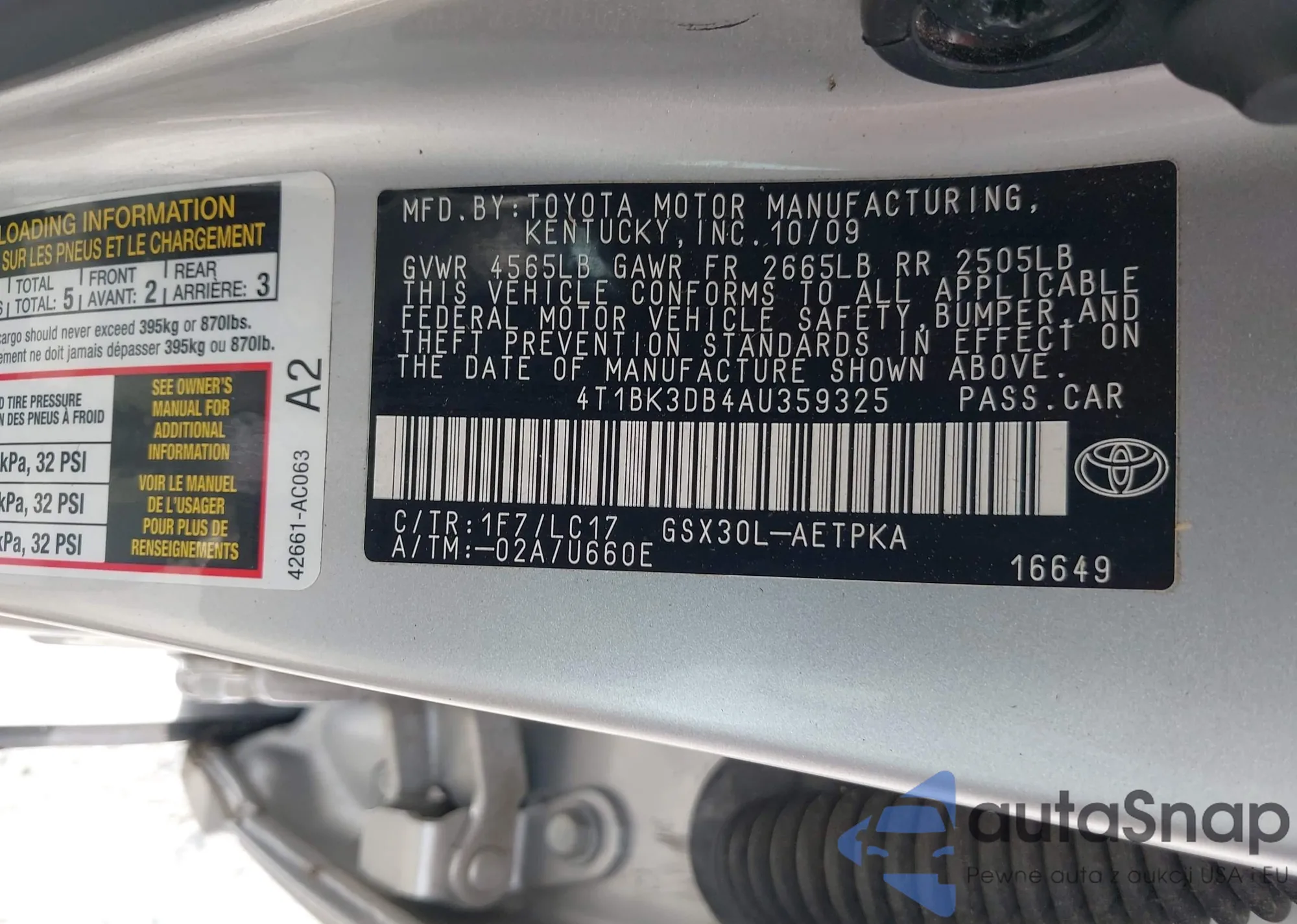 • VIN 4T1BK3DB4AU359325