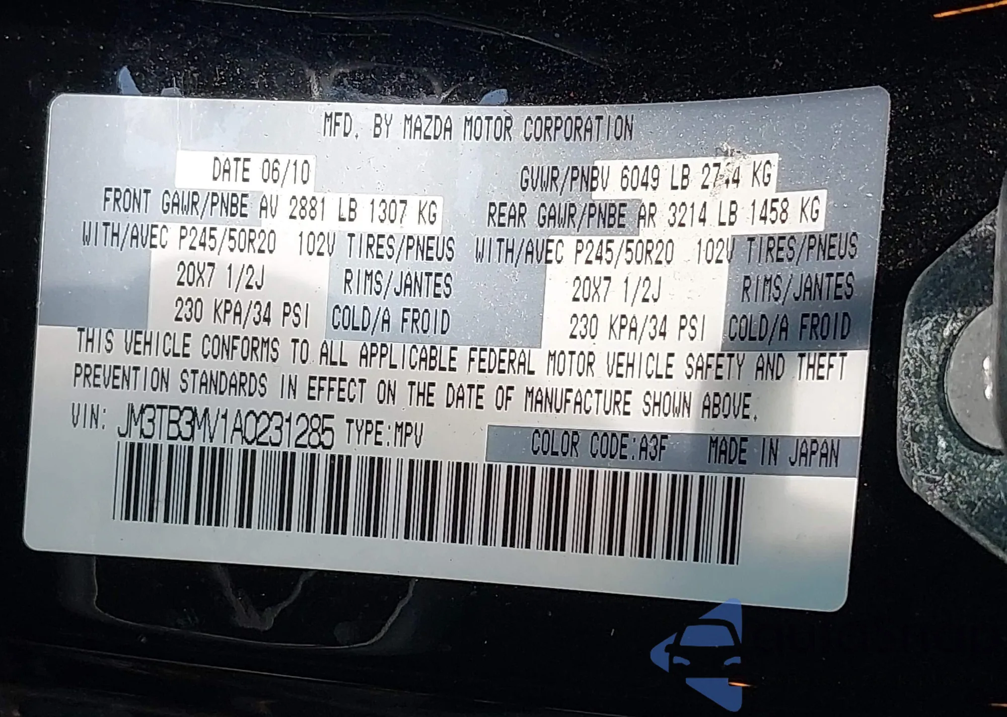 • VIN JM3TB3MV1A0231285