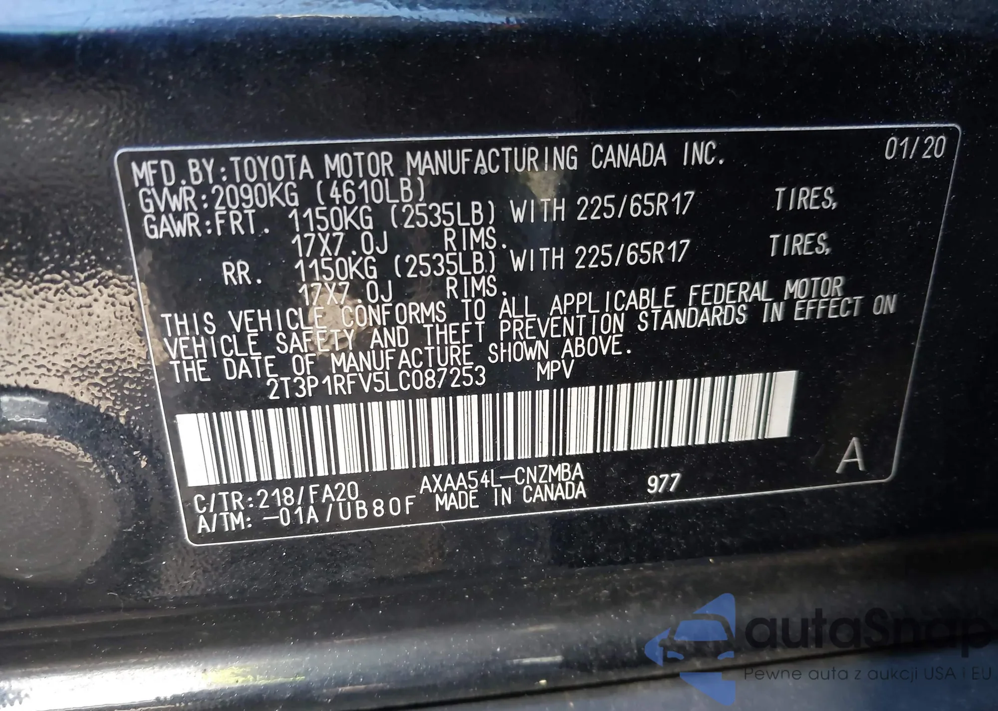 • VIN 2T3P1RFV5LC087253
