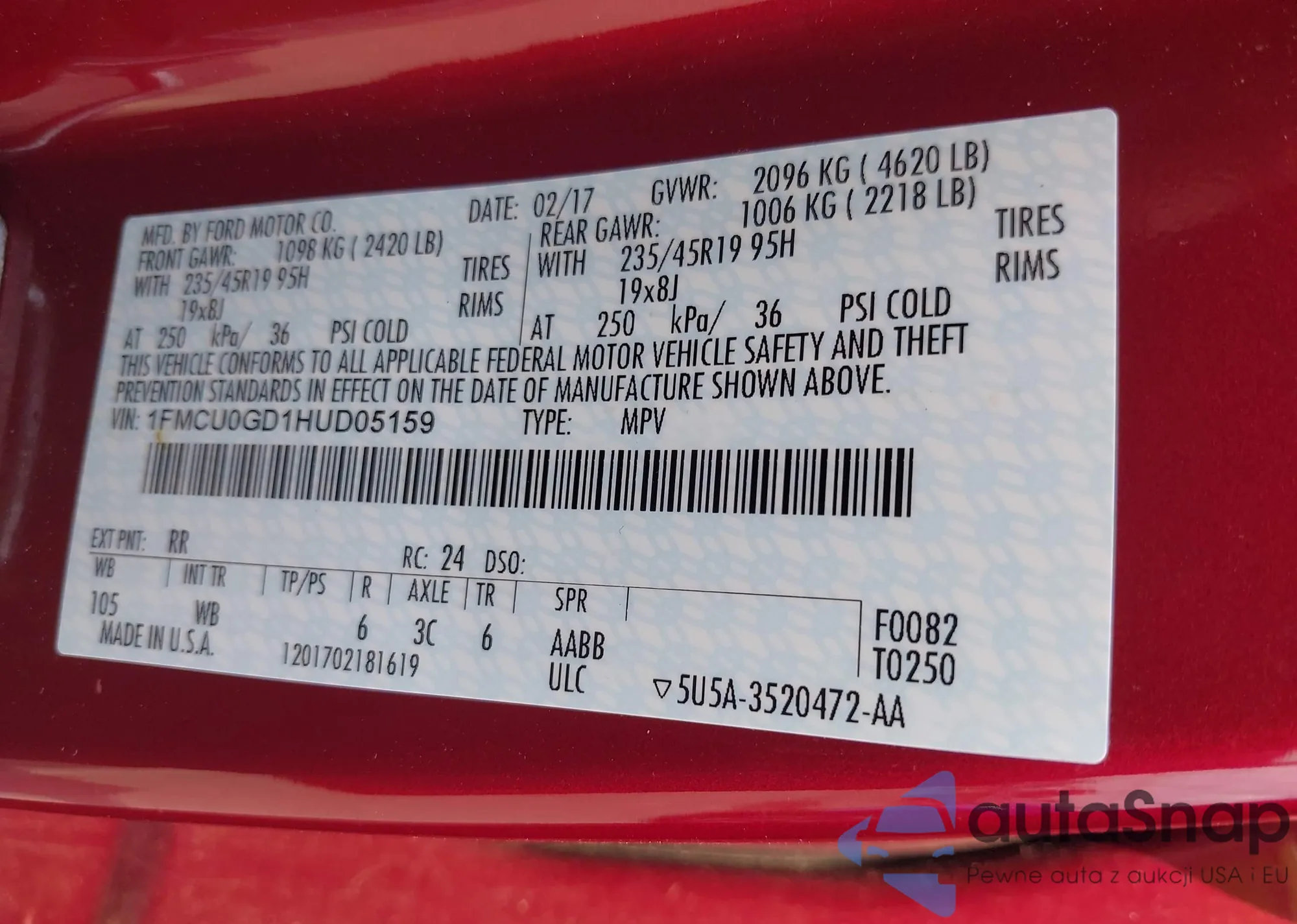 LOT: 42483092 VIN: WA1BNAFY1J2096945