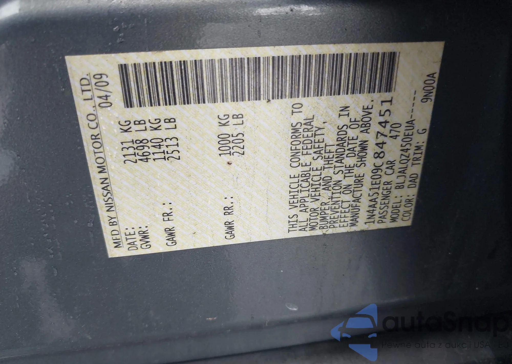 • VIN 1N4AA51E09C847451