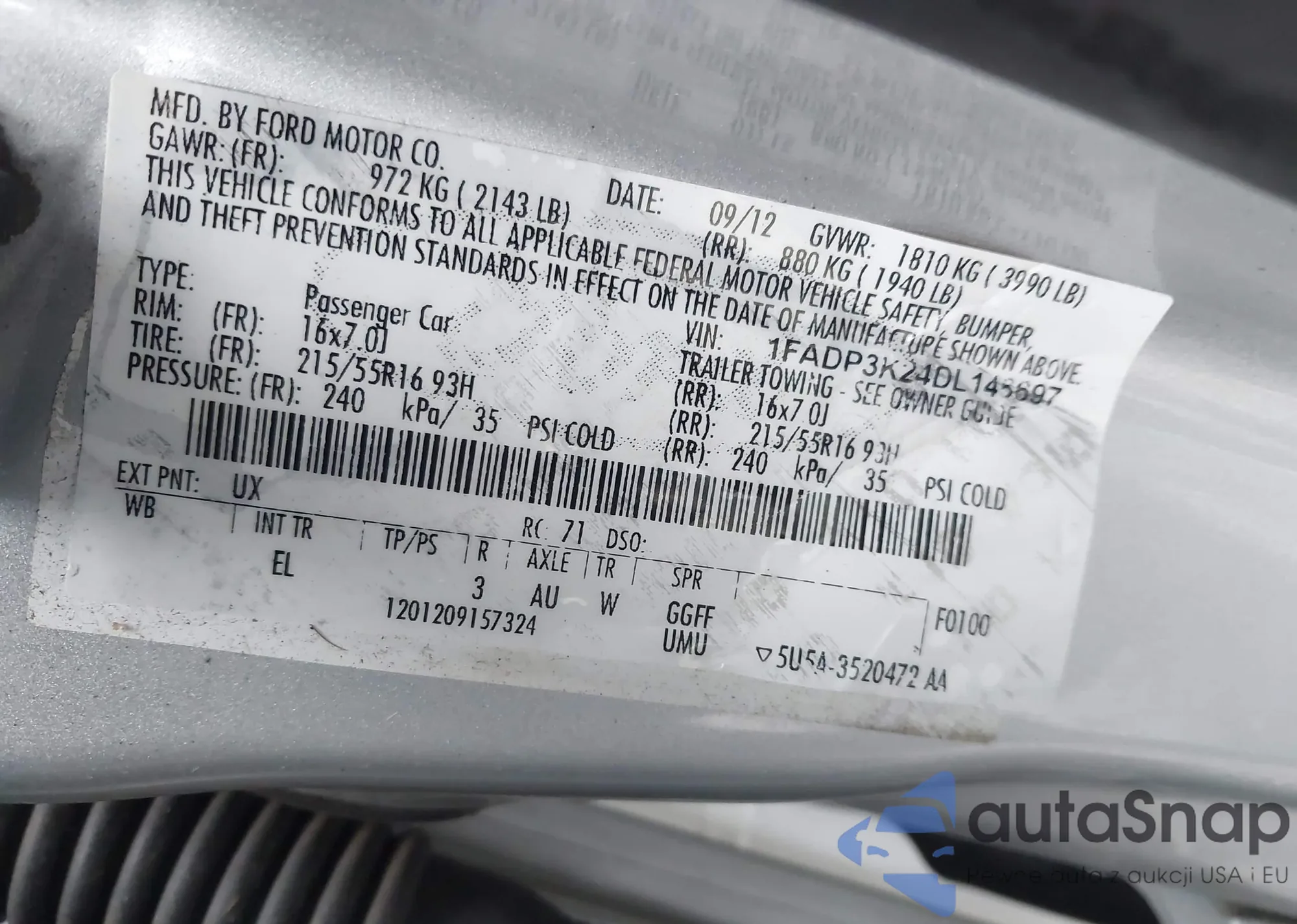LOT: 42045201 VIN: KNAGM4A74D5339470