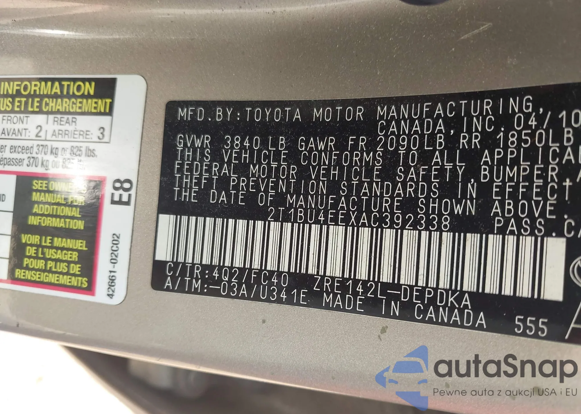 • VIN 2T1BU4EEXAC392338