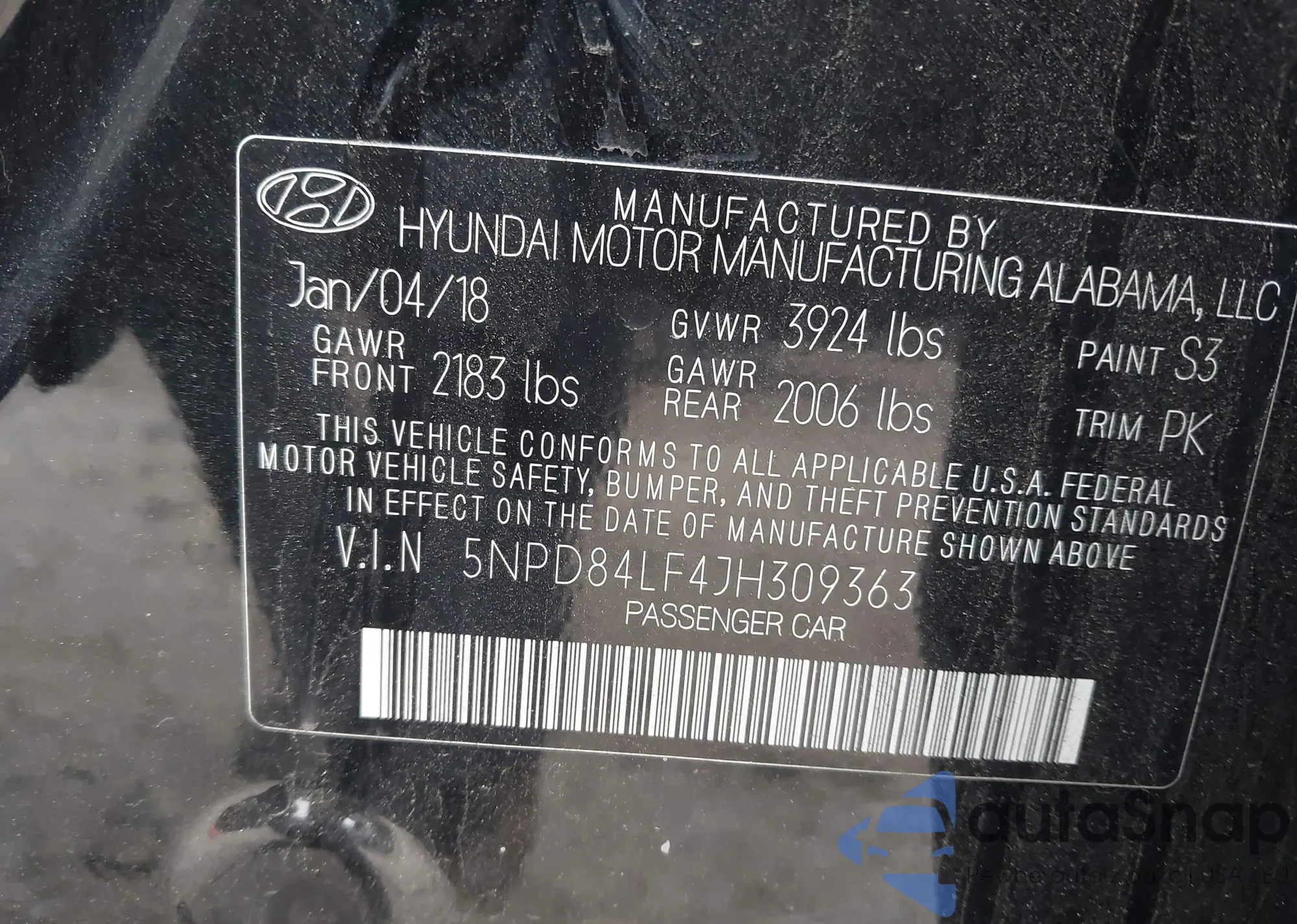 • VIN 5NMSG73D68H152209