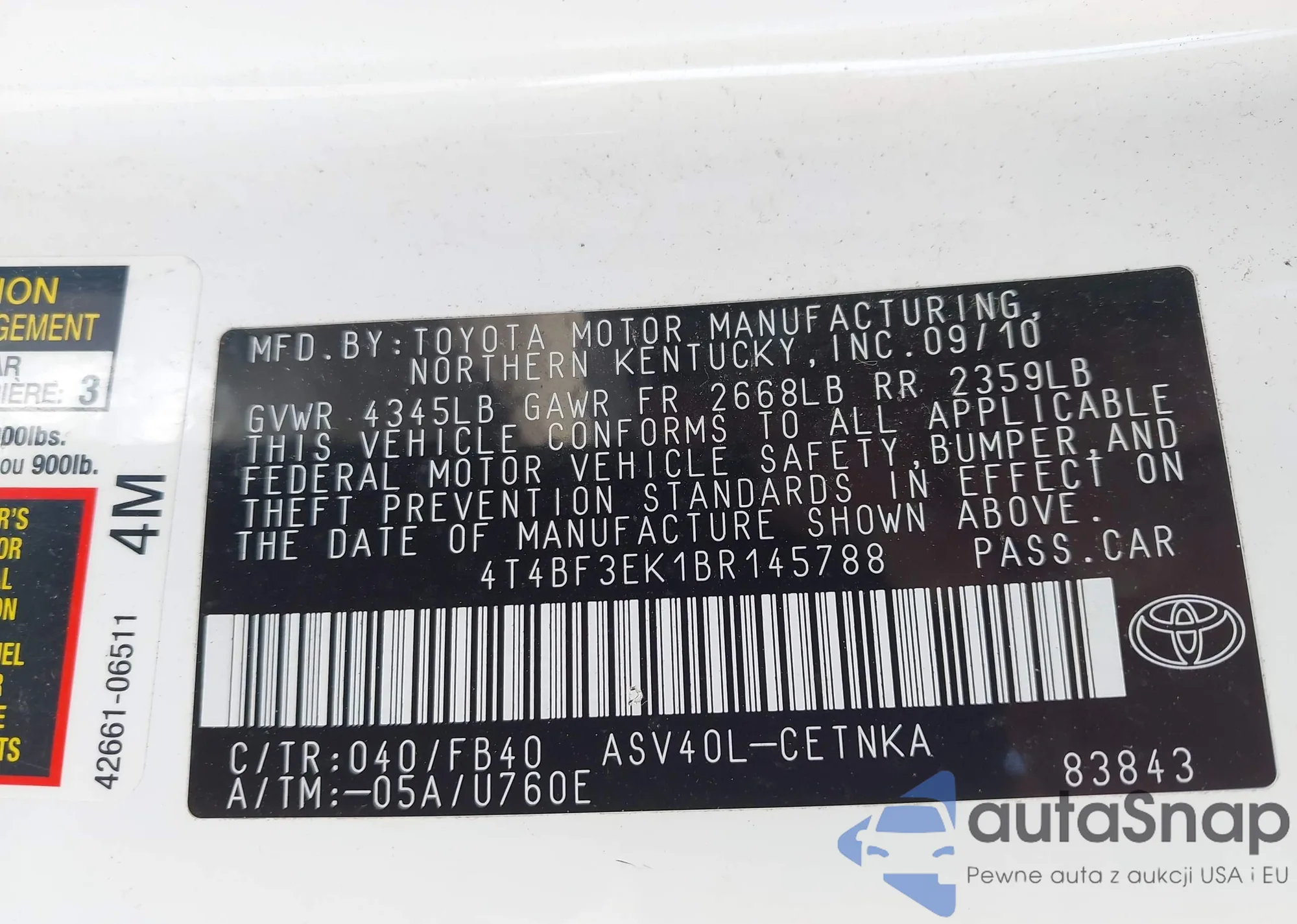 LOT: 42500885 VIN: 4T1BK36BX7U247876