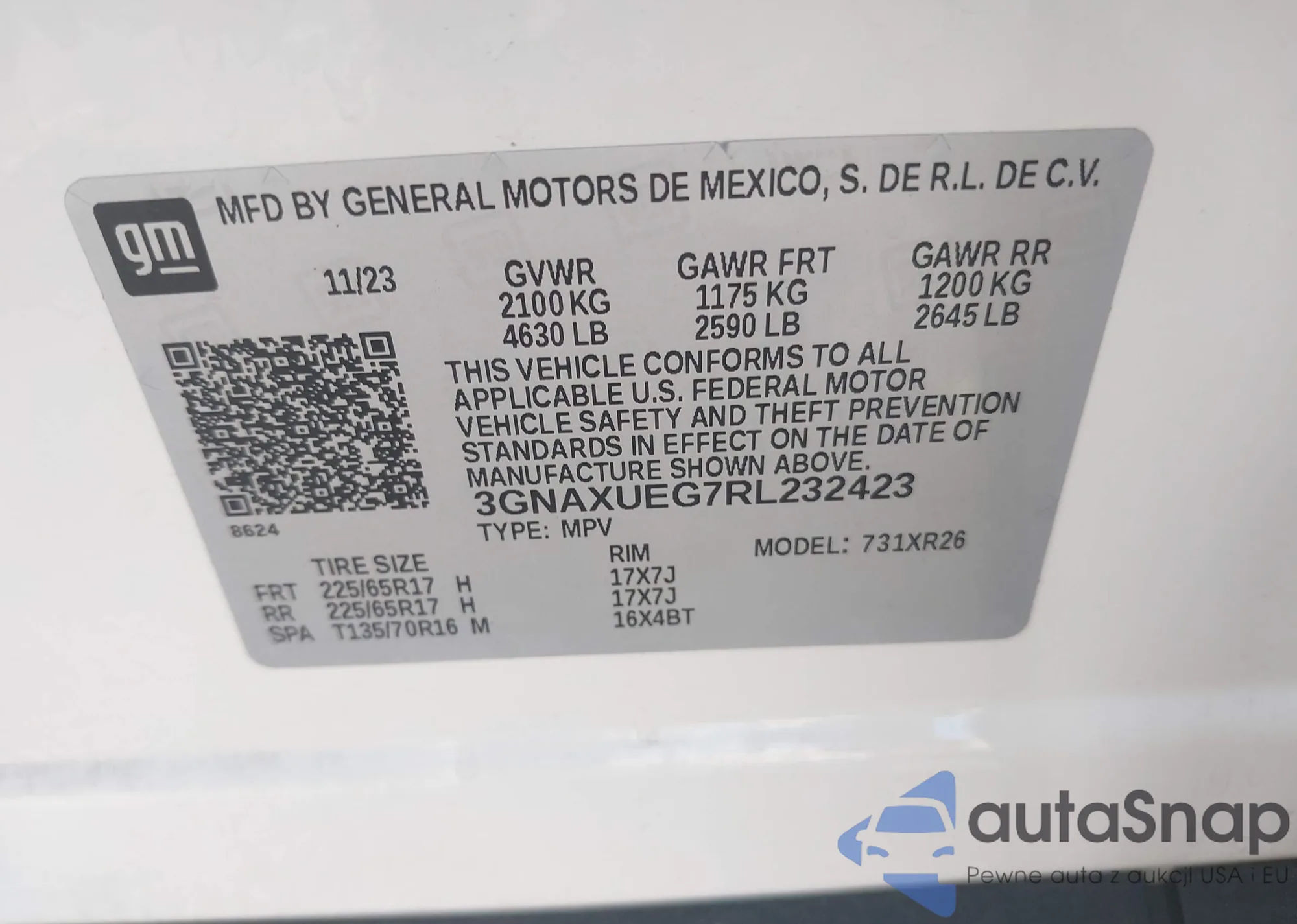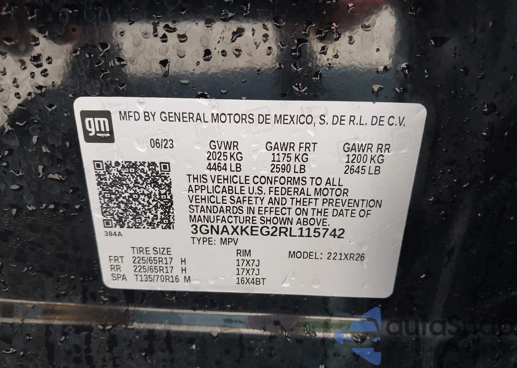 LOT: 42254840 VIN: 3GNAXKEG2RL115742