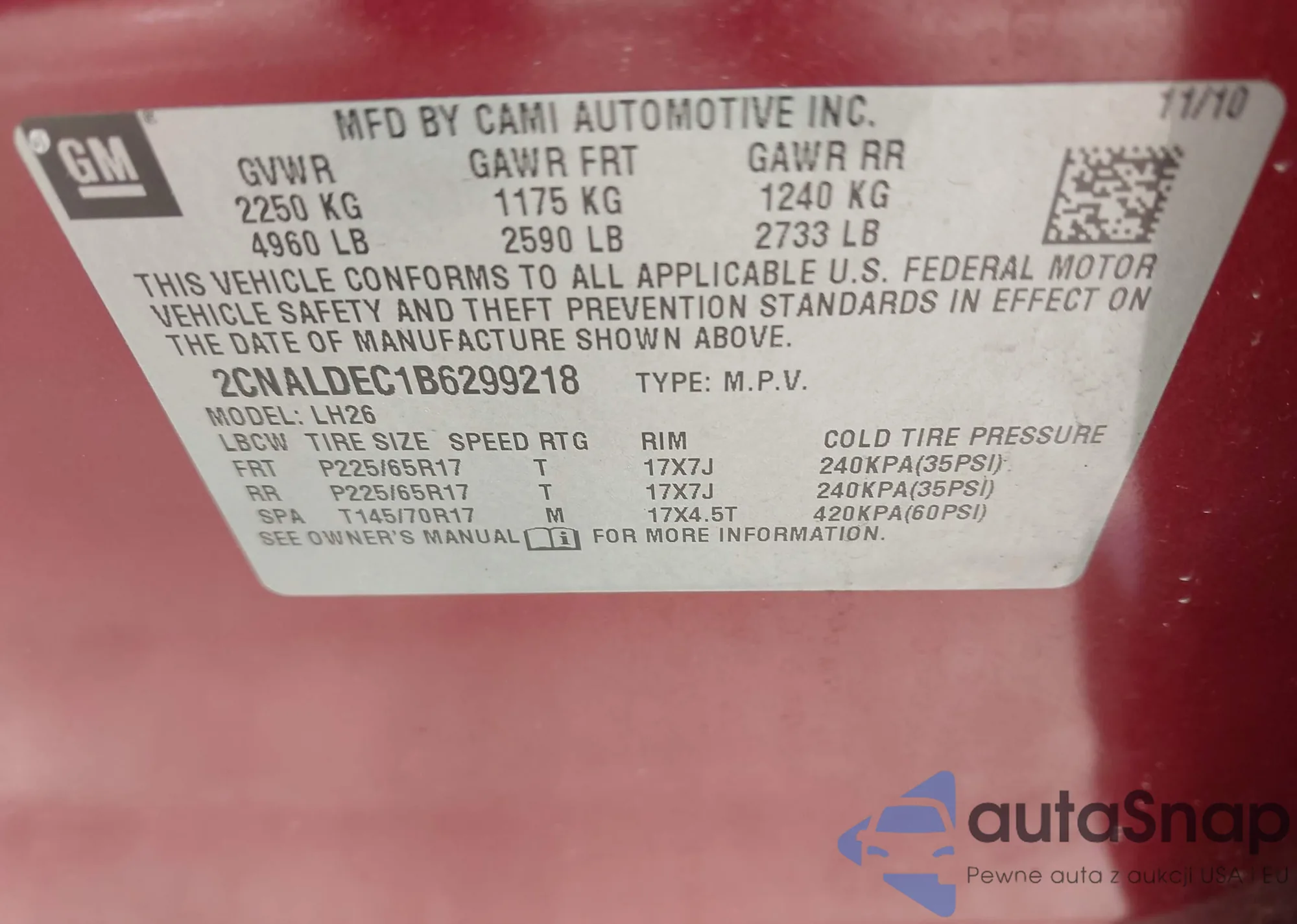 • VIN 2CNALDEC1B6299218