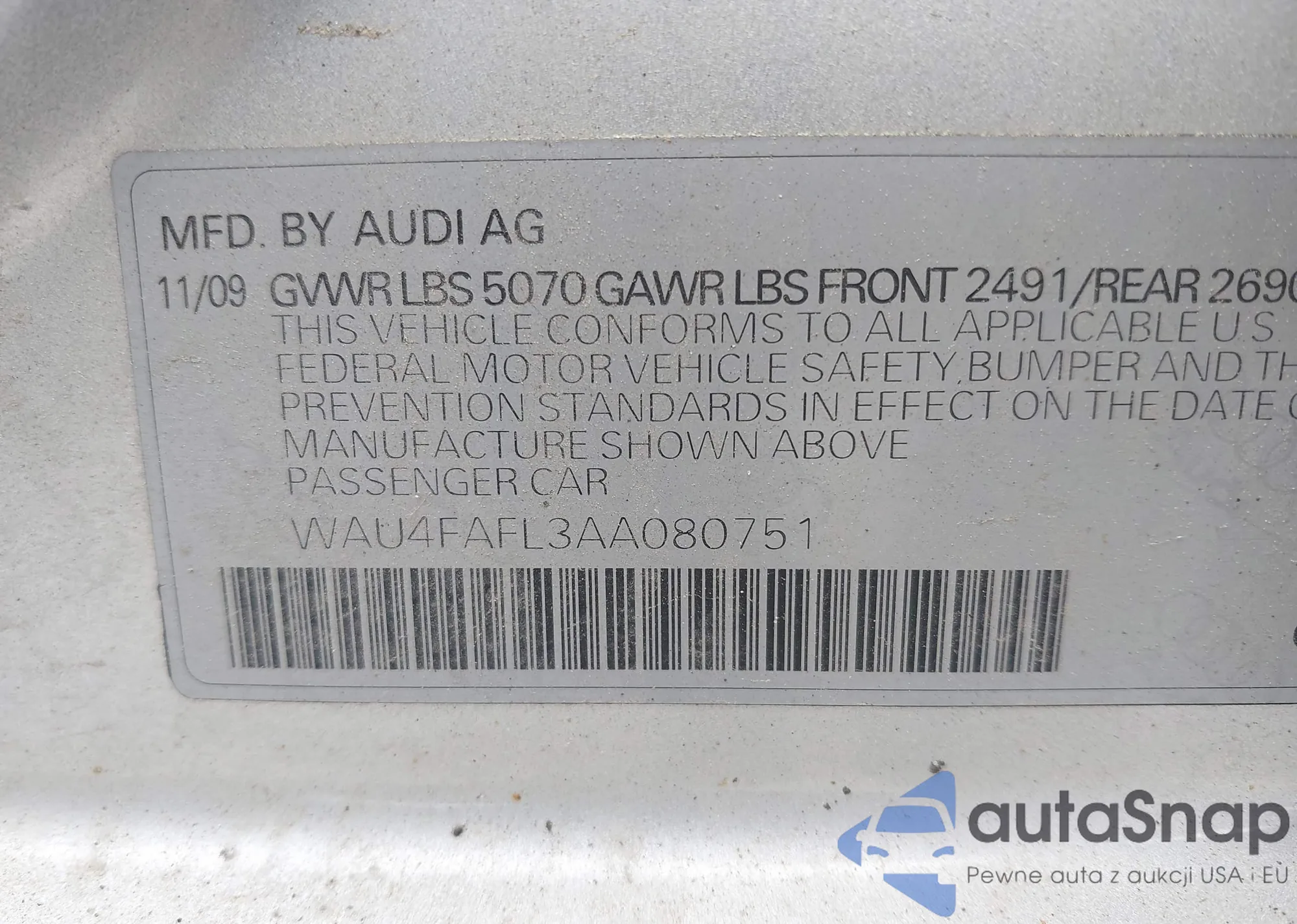 • VIN WAU4FAFL3AA080751