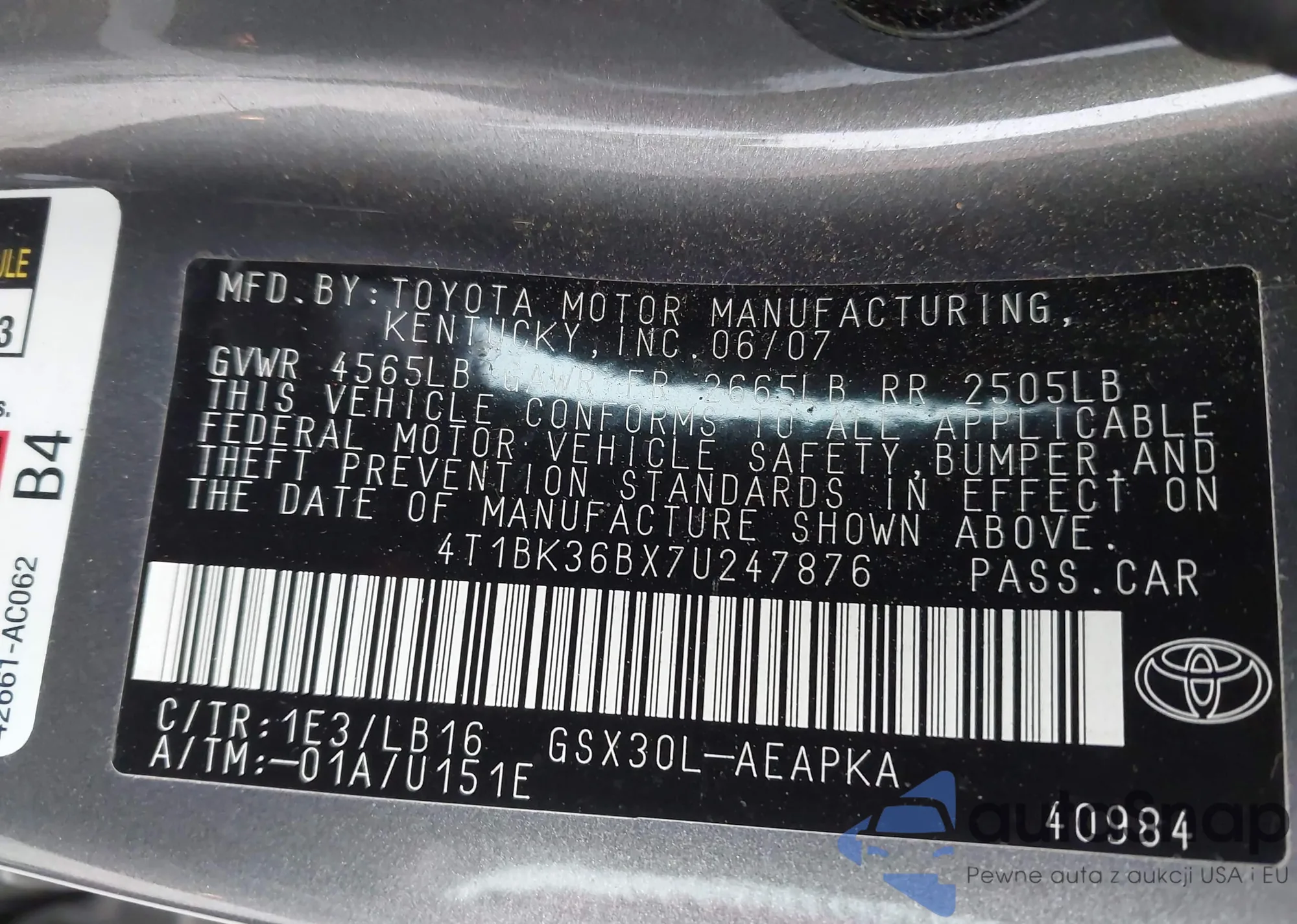 • VIN 4T1BK36BX7U247876