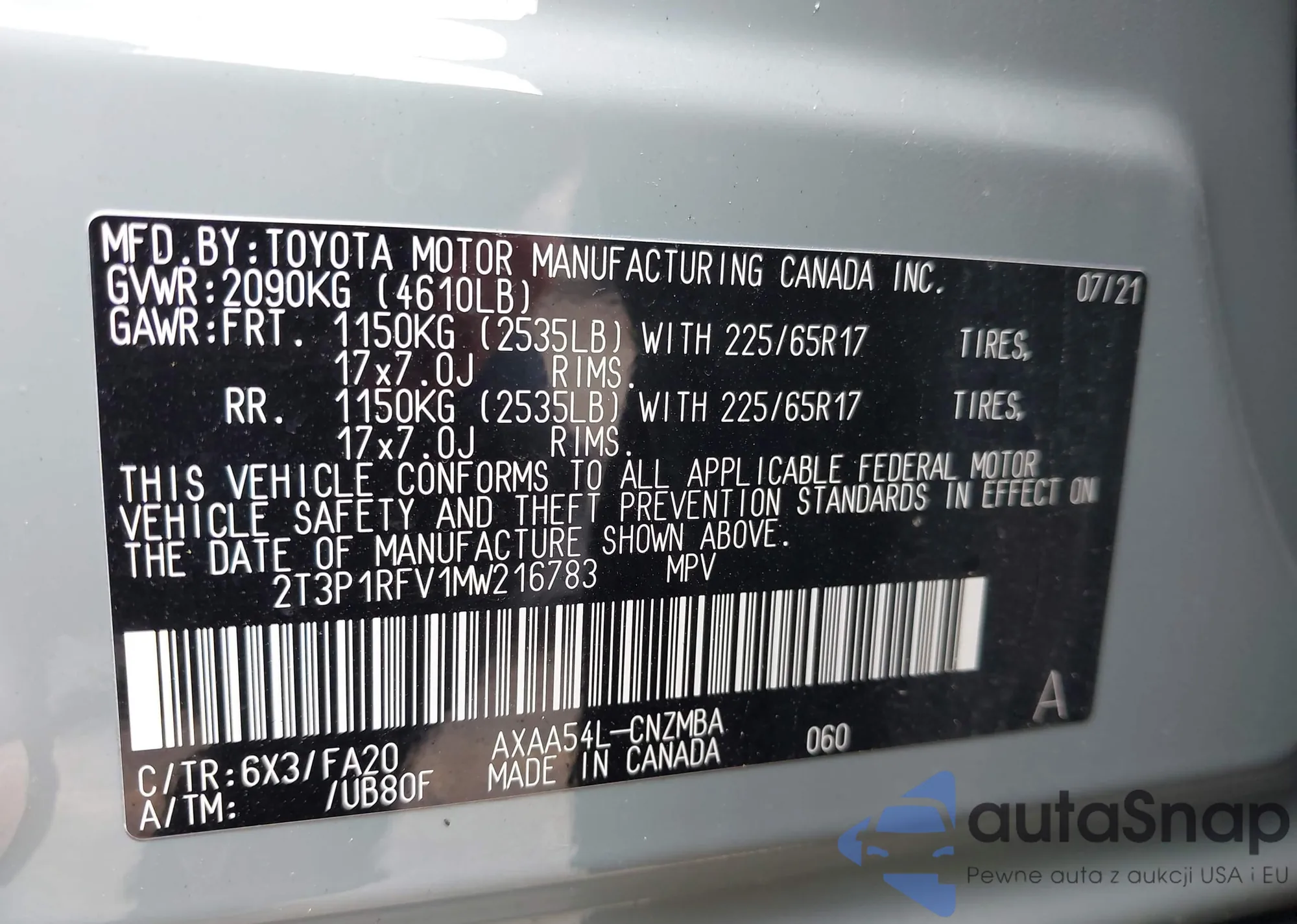 • VIN 2T3P1RFV1MW216783