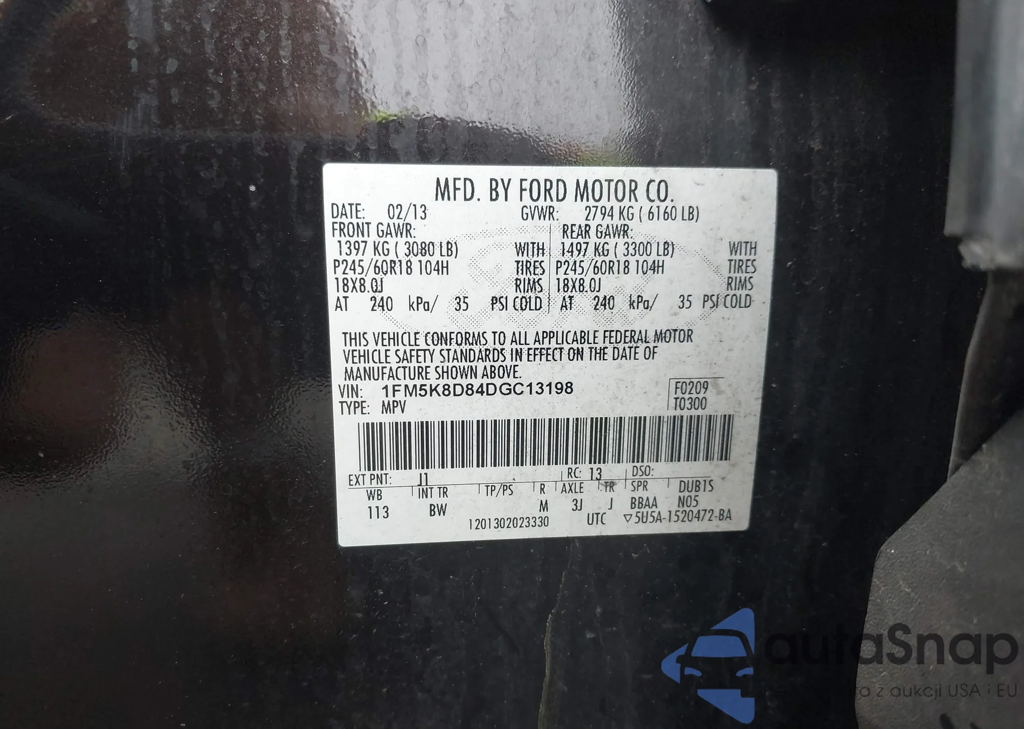 LOT: 42183611 VIN: 1FM5K8D84DGC13198