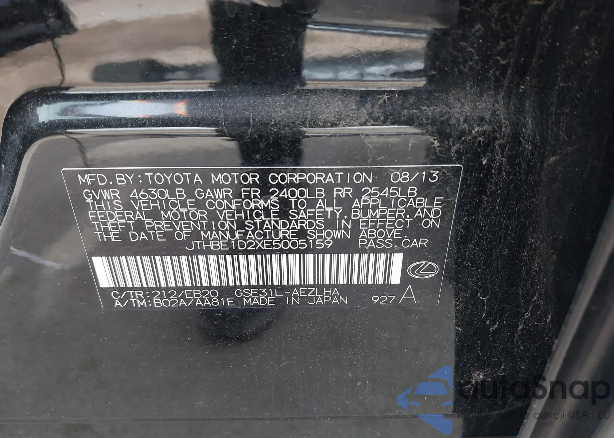 • VIN JTHBE1D2XE5005159