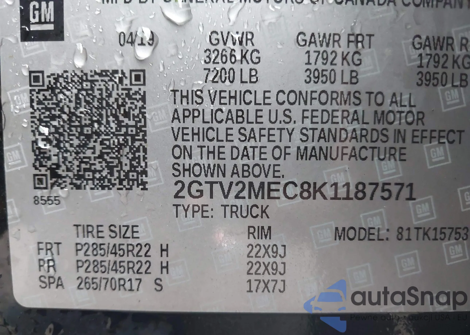 • VIN 2GTV2MEC8K1187571