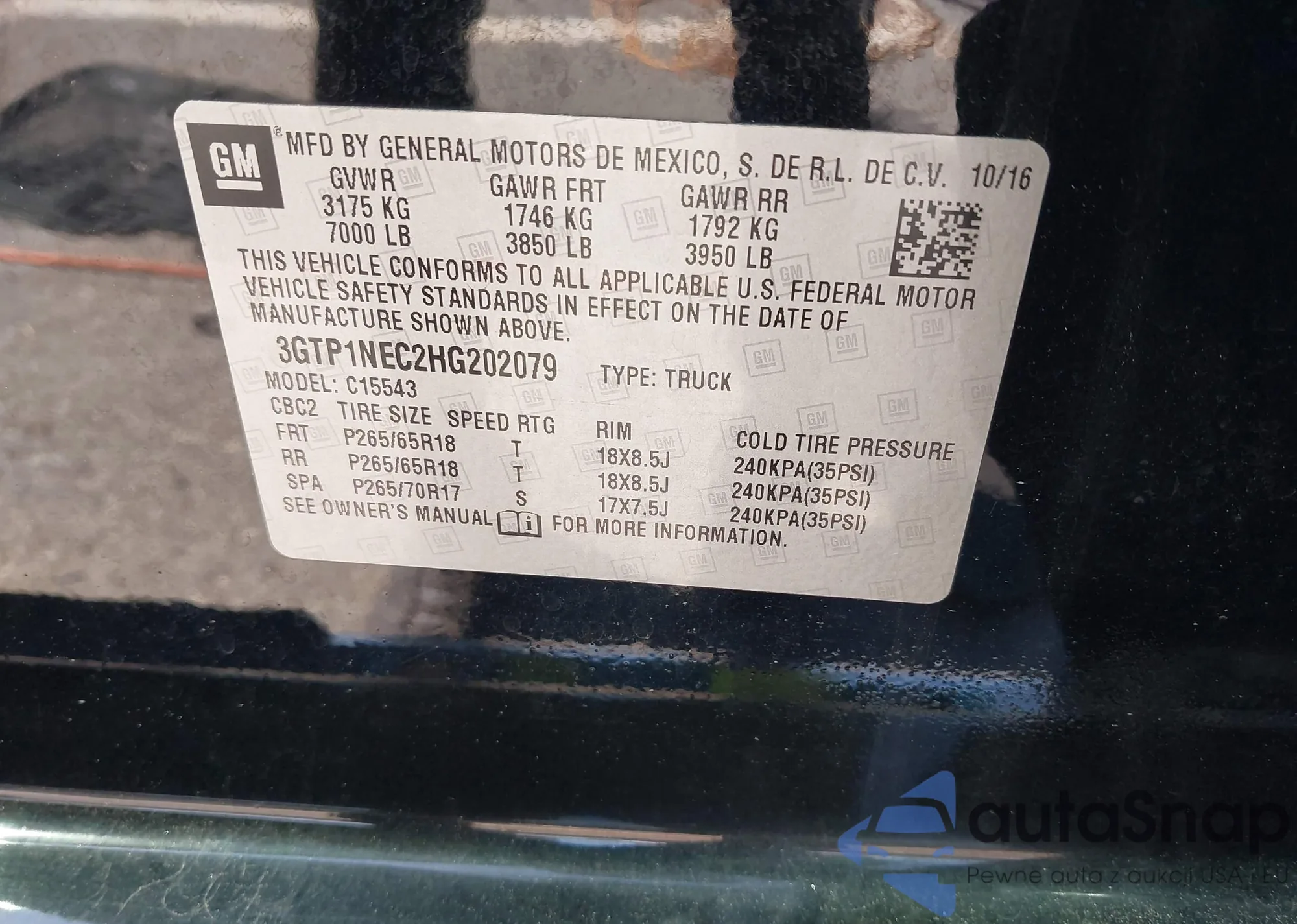 • VIN 3GTP1NEC2HG202079