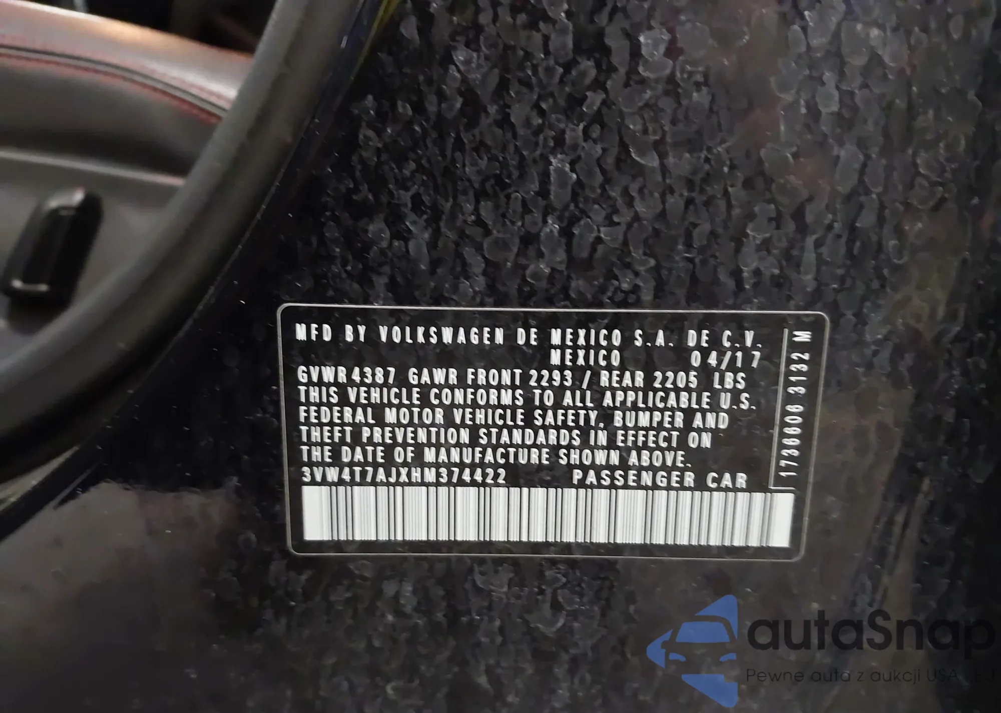 • VIN 3VW4T7AJXHM374422